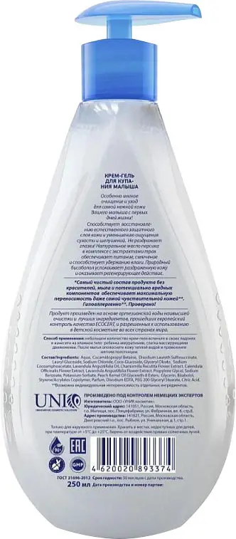 Крем-гель для купания малыша AQA baby Особенности: способствует восстановлению естественного защитного слоя кожи и уменьшению ощущения су...