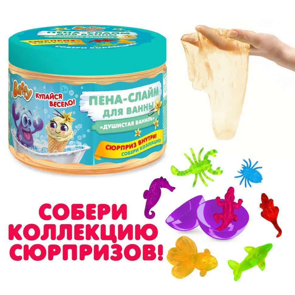 Пена-слайм для ванны детская с сюрпризом Душистая ваниль, 300 мл, Baffy