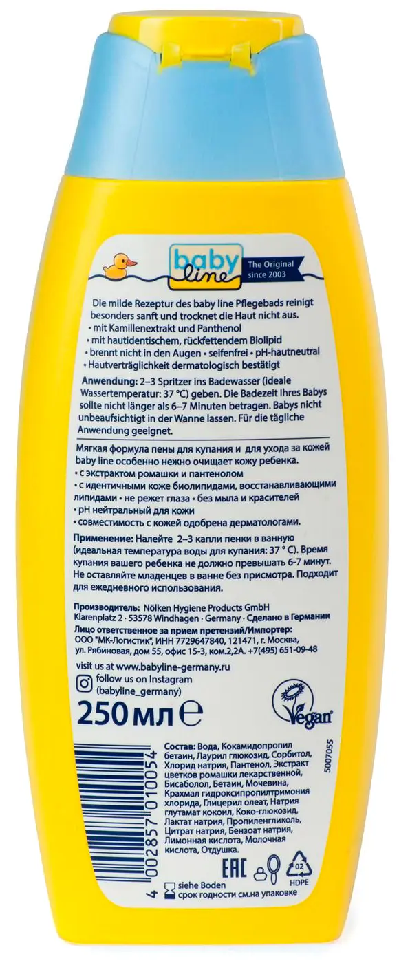 Мягкая формула пены для купания и для ухода за кожей Babyline особенно бережно очищает кожу малыша.