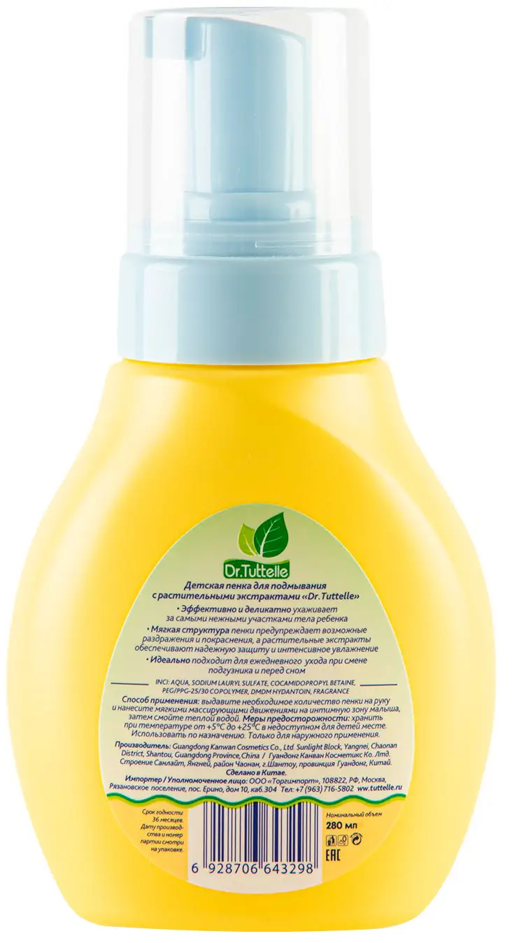 Пенка для подмывания с раститительными экстрактами Dr.Tuttelle идеально подойдёт для купания малыша с первых дней жизни.