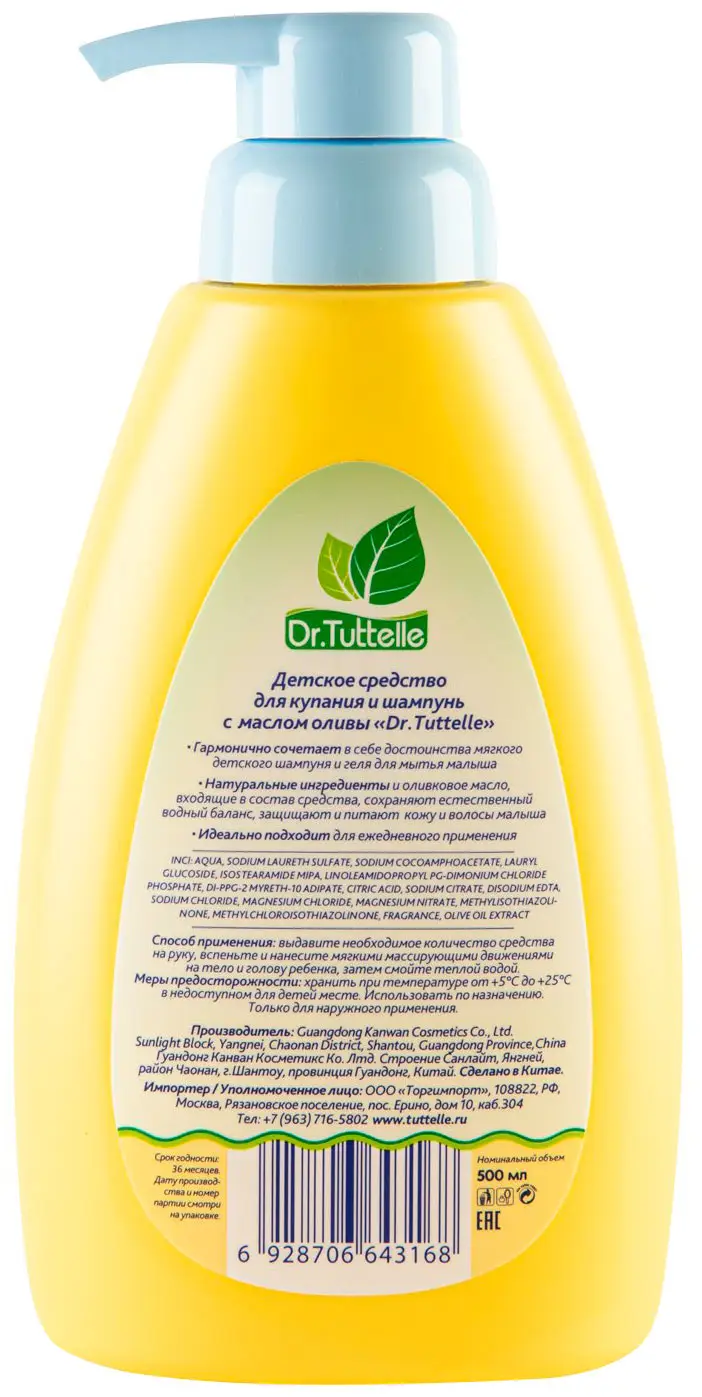 Средство для купания и шампунь с маслом оливы Dr.Tuttelle идеально подойдёт для купания малыша с первых дней жизни.