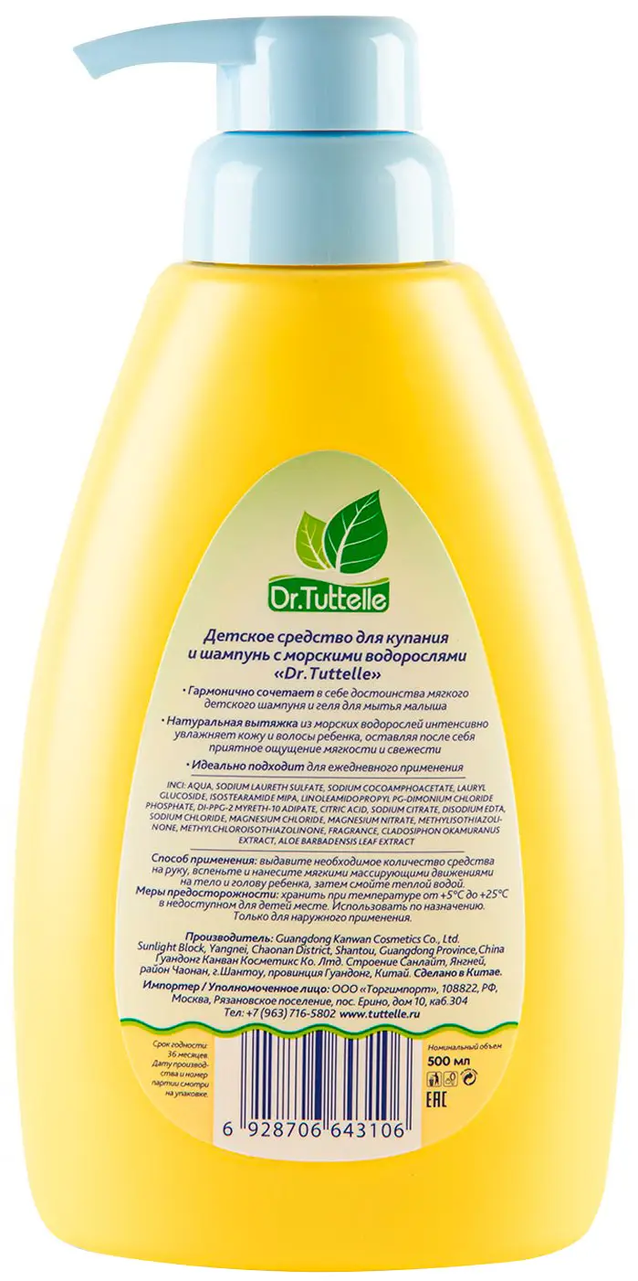 Средство для купания и шампунь с морскими водорослями с дозатором Dr.Tuttelle 500 мл