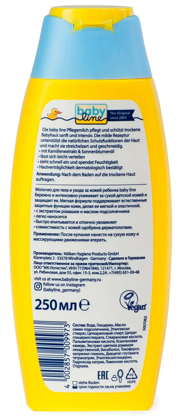 Молочко для тела и ухода за кожей ребёнка Babyline бережно и интенсивно ухаживает за сухой детской кожей и защищает её.