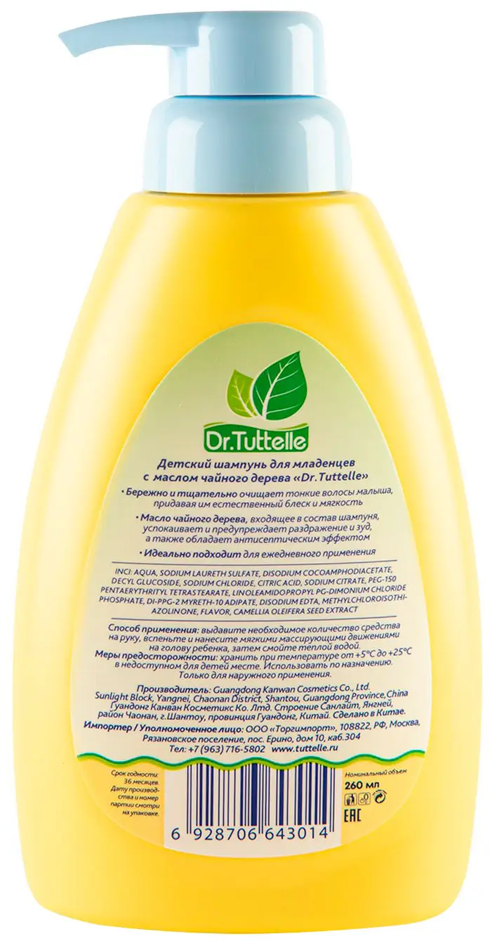 Шампунь для младенцев с маслом чайного дерева с дозатором Dr.Tuttelle 260 мл