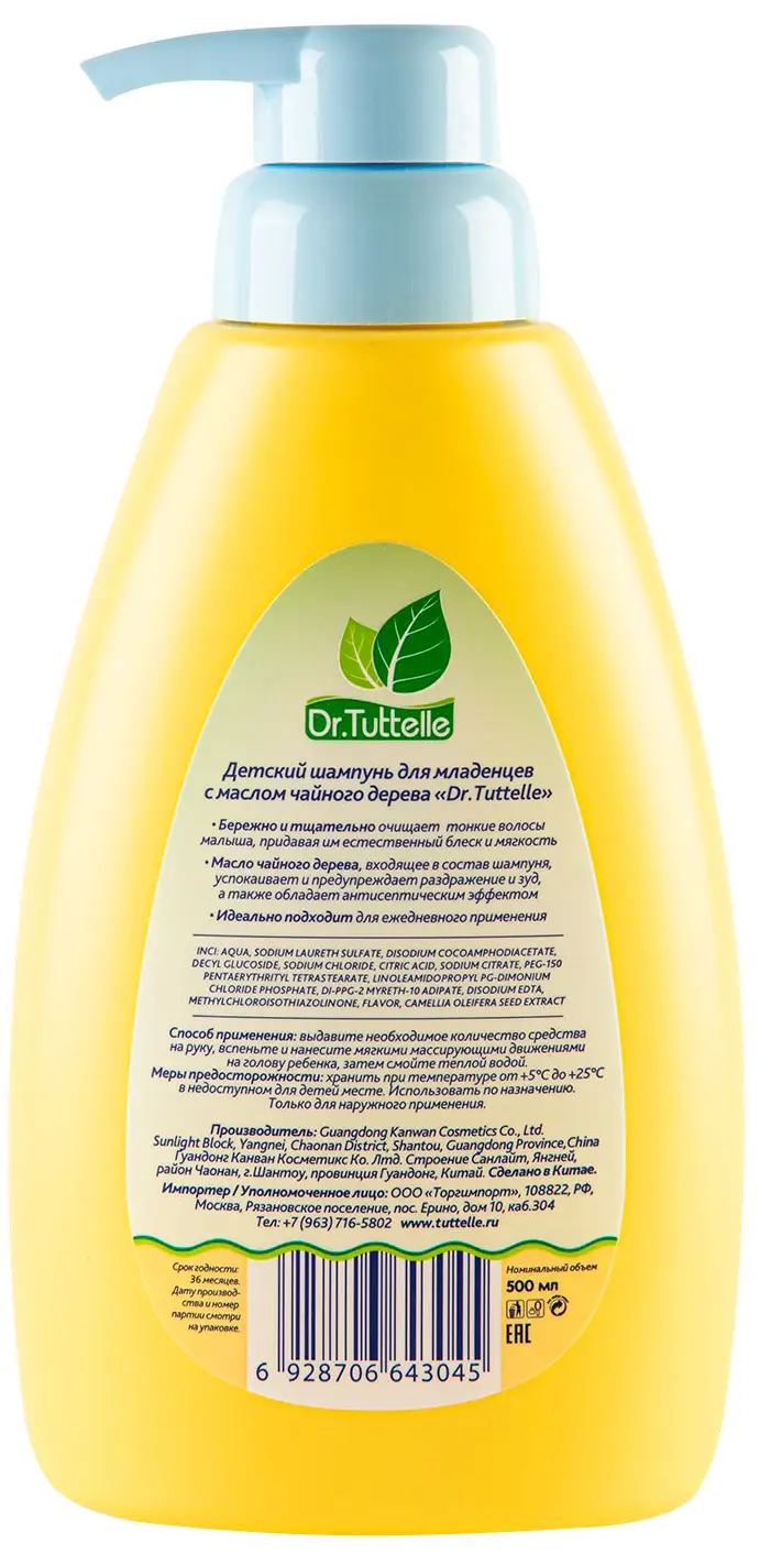 Шампунь для младенцев с маслом чайного дерева с дозатором Dr.Tuttelle 500 мл