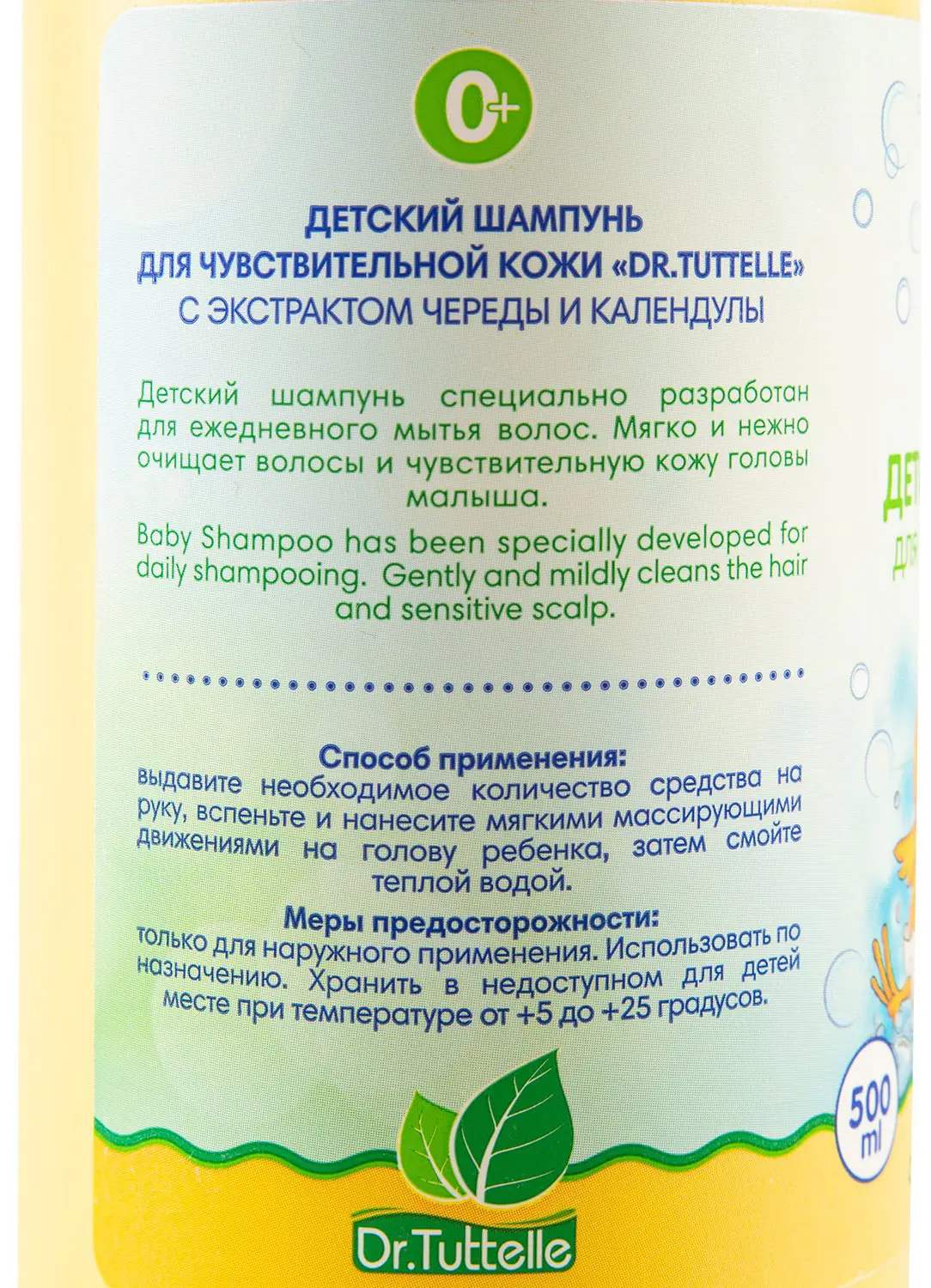Шампунь для чувствительной кожи Dr.Tutelle, формула «без слёз», не содержит мыла и красителей, с первых дней жизни.