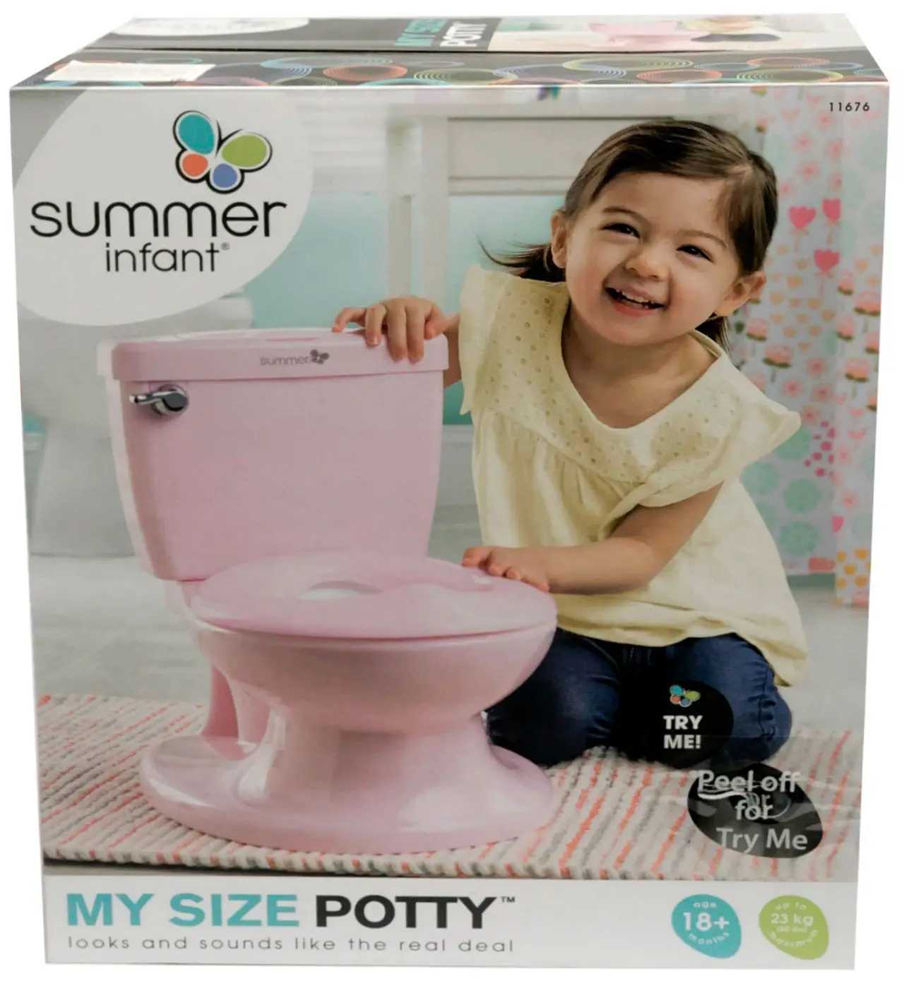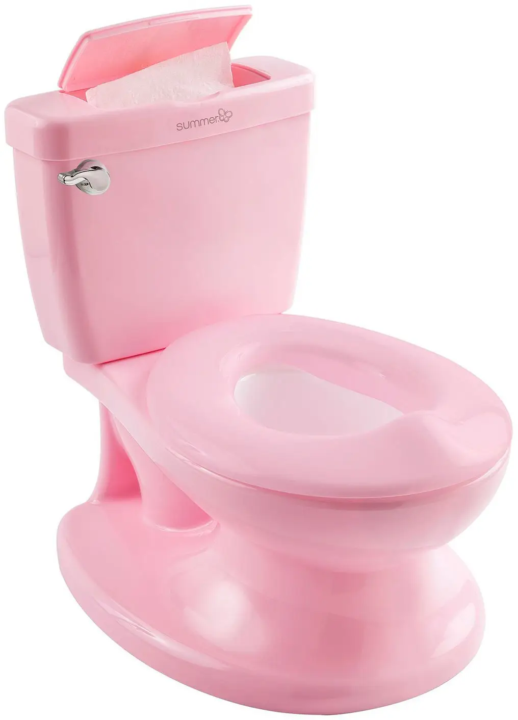 Аксессуар полностью имитирует сантехнику в туалете вплоть до поднимающегося сиденья, поэтому поможет родителям научить малыша пользоваться унитазом. Горшок в виде унитаза предназначен для детей в возрасте от 18 месяцев до 5 лет. Родители, покупая этот аксессуар, дадут ребёнку возможность побыть немного взрослыми и ответственными.