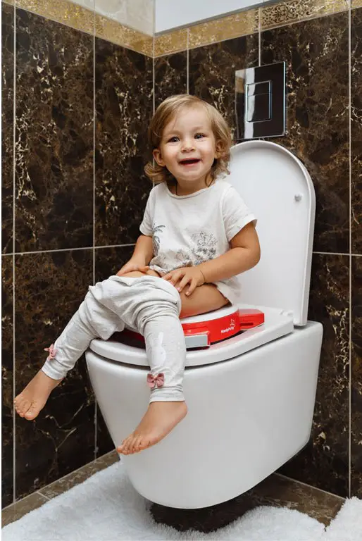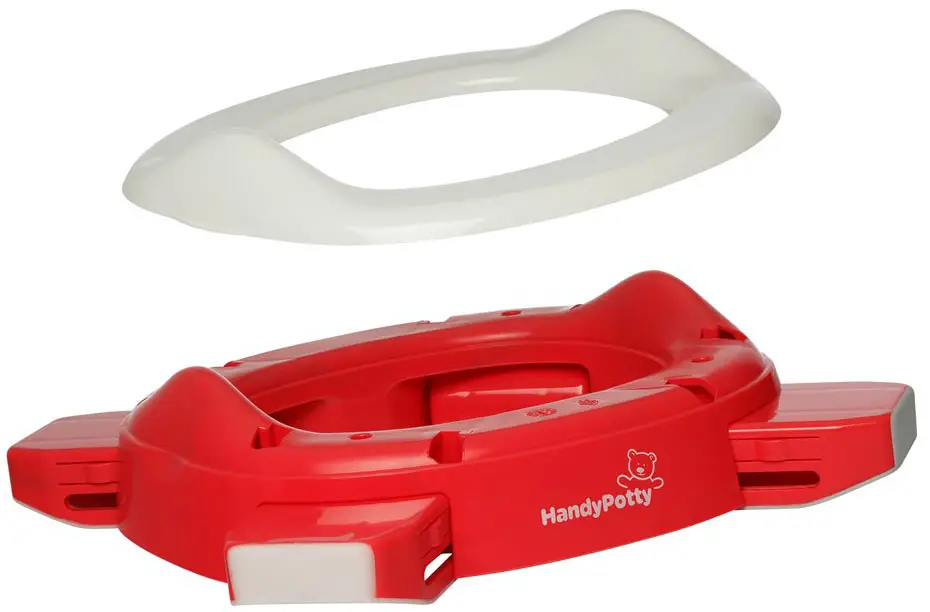 адаптер на унитаз – вы можете использовать HandyPotty в качестве детского сиденья на унитаз, просто развернув ножки в стороны до упора. Это позволяет ребёнку безопасно сидеть на унитазе, адаптер предотвращает контакт с бактериями, обитающими на крышке.