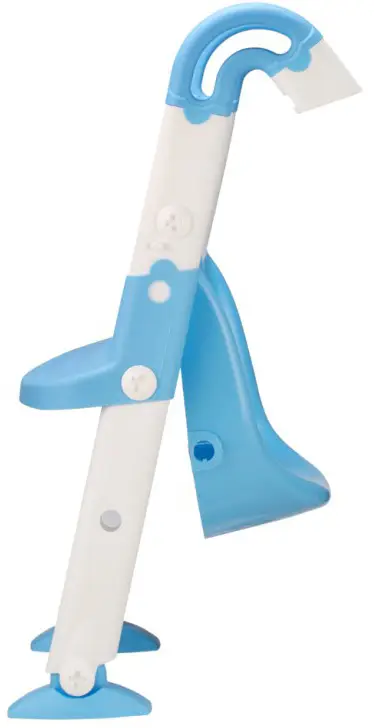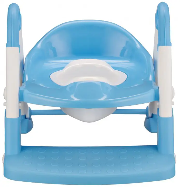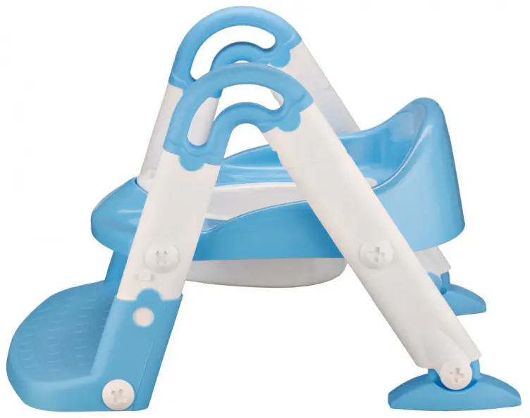 - ступенька с антискользящим покрытием и удобные ручки помогают ребенку залезть на унитаз и слезть с него;