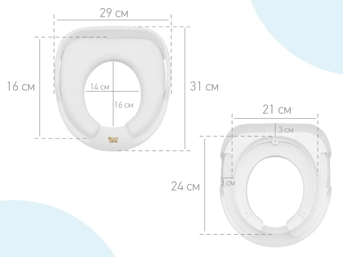 Адаптер имеет удобную анатомическую форму, мягкое сидение и ручки, за которые удобно держаться. Устройство легко моется и подходит для большинства современных унитазов. Рекомендуем перед покупкой сверить размеры вашего унитаза и размеры адаптера для проверки совместимости. Изготовлено из безопасного полимерного сырья.