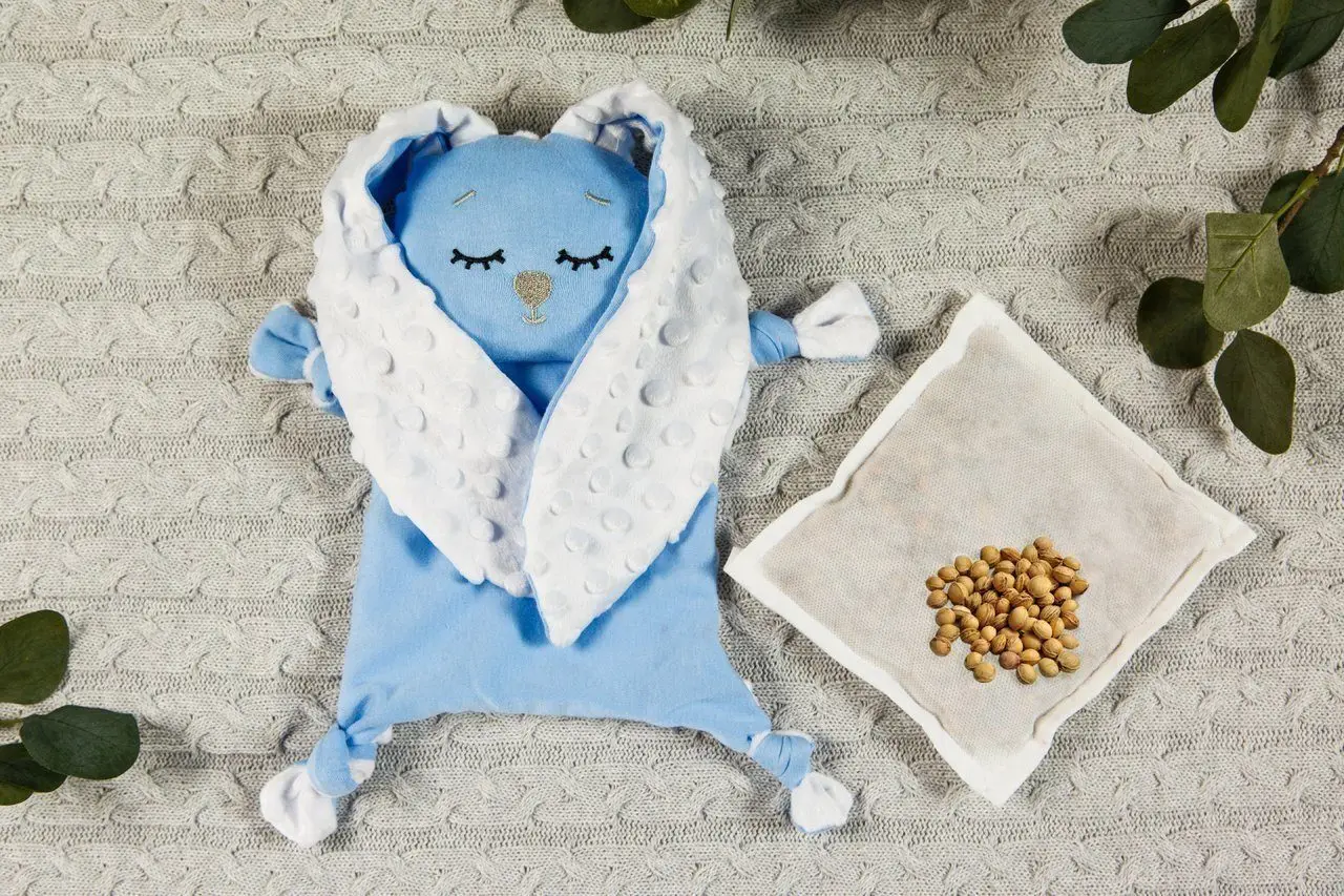 состоит из милой игрушки комфортера и грелки из вишнёвых косточек в индивидуальном чехле;