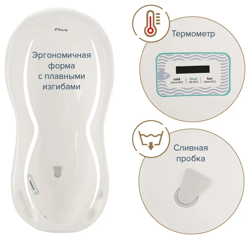 Ванночка для купания Pituso Ronda слив, термометр, белый 101 см