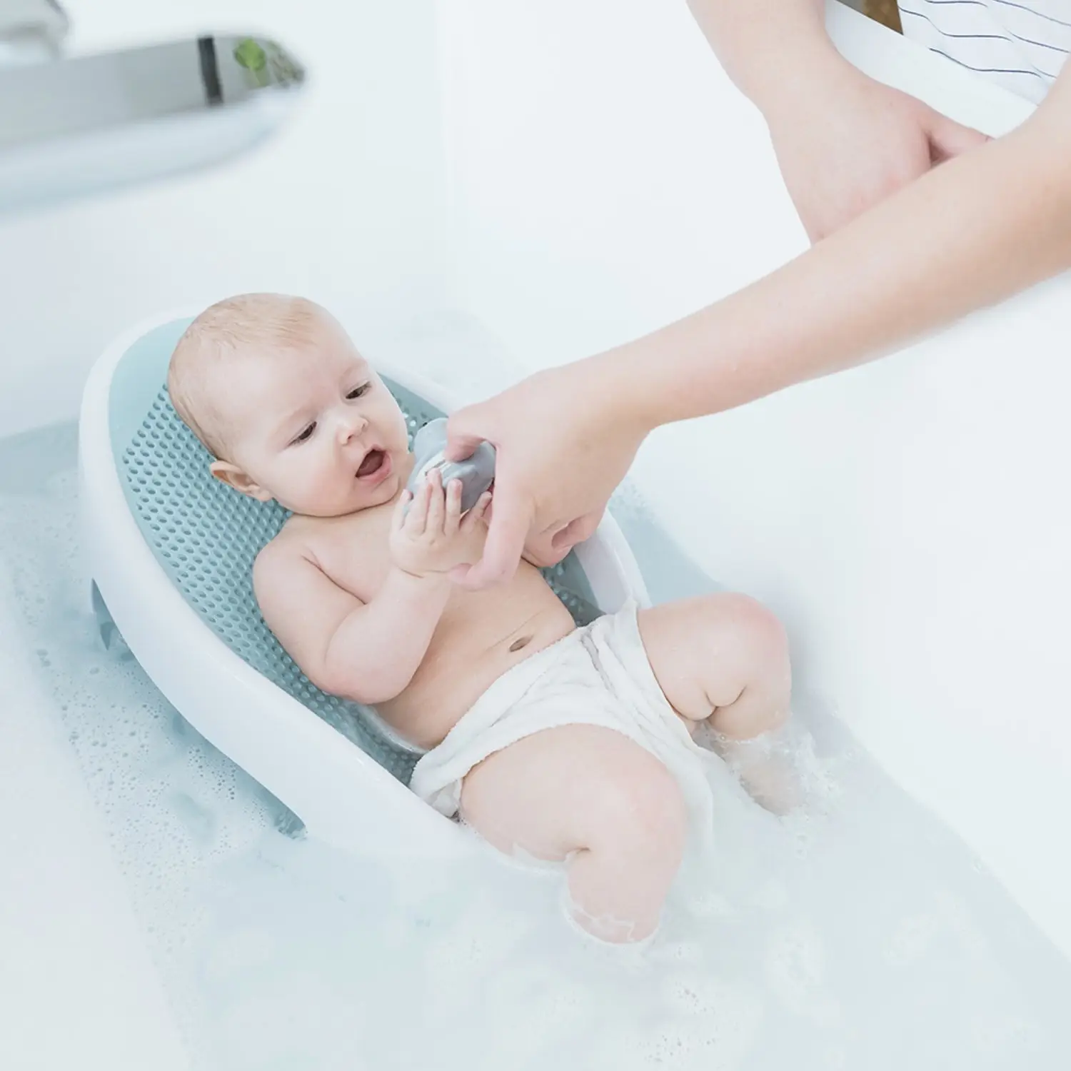 Горка-лежак для детей Angelcare с системой антискольжения станет незаменимым помощником для родителей во время купания малыша.