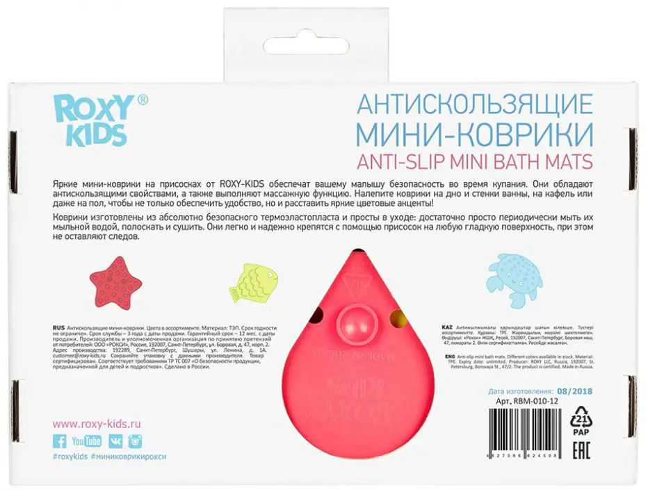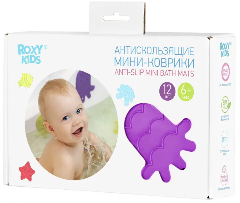 С антискользящими ковриками от Roxy Kids можно не переживать за безопасность малыша во вермя купания.