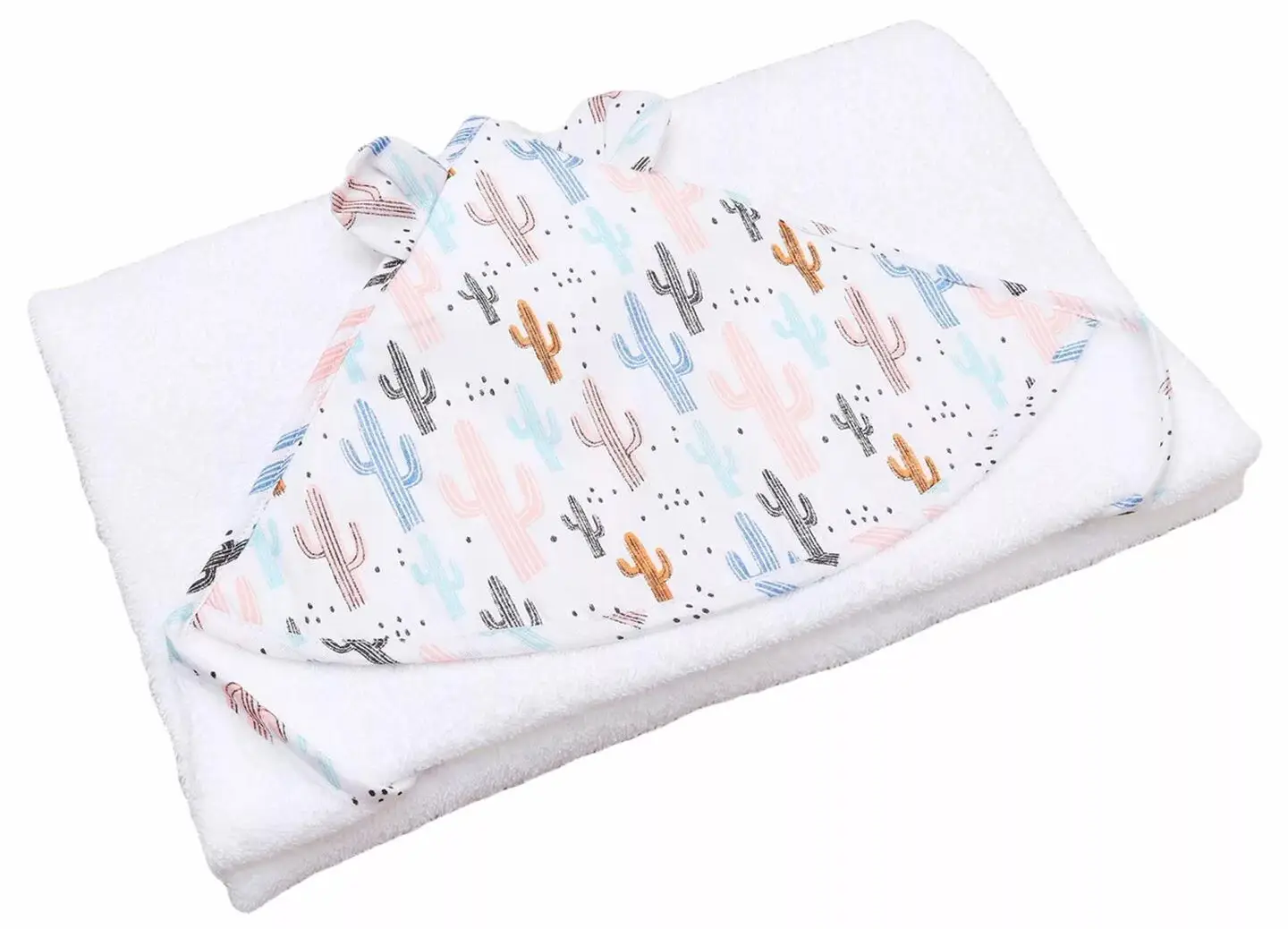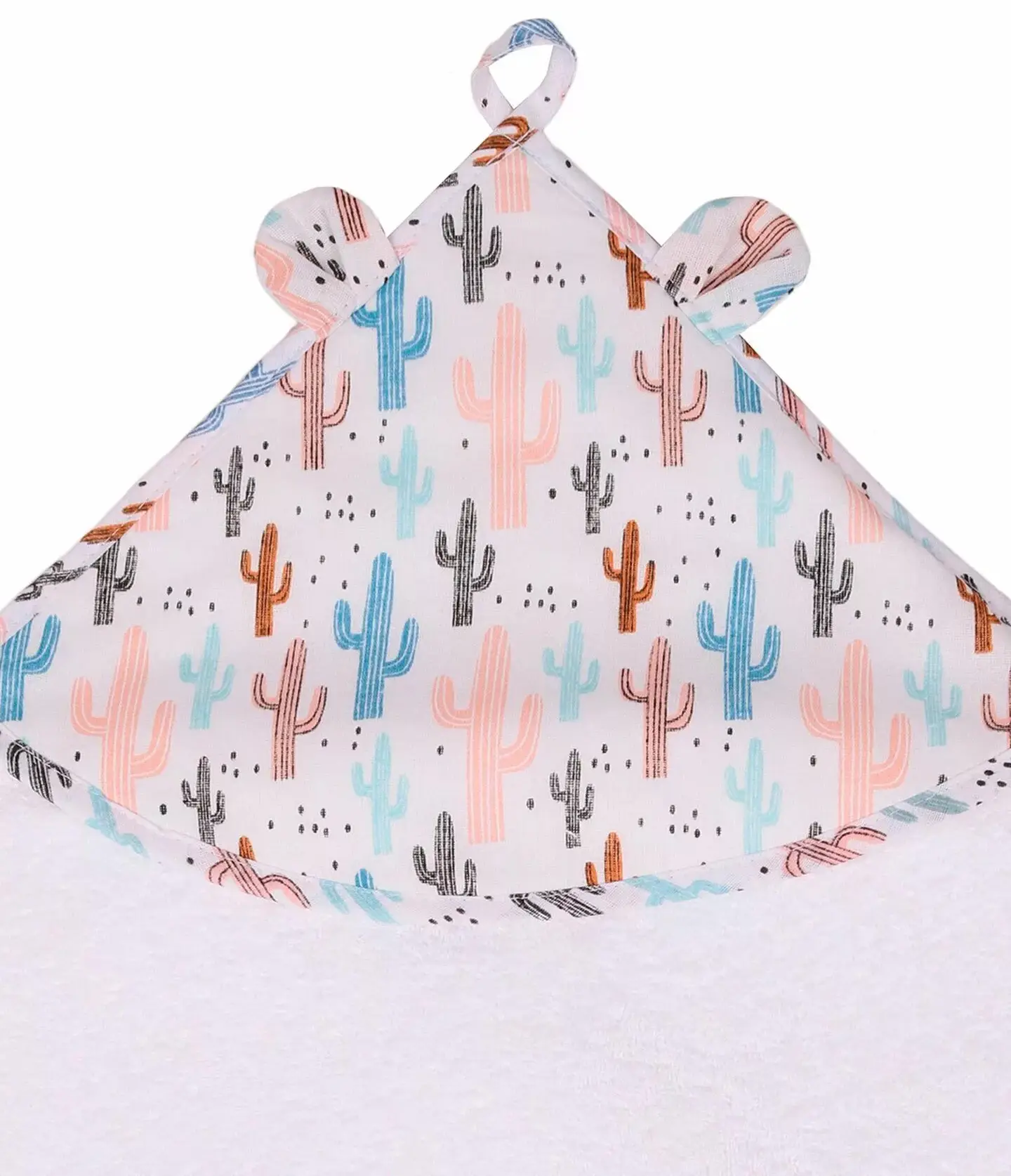 - уголок полотенца выполнен из высококачественной махровой ткани с отделкой из принтованной хлопковой ткани;
