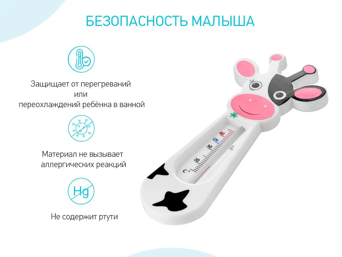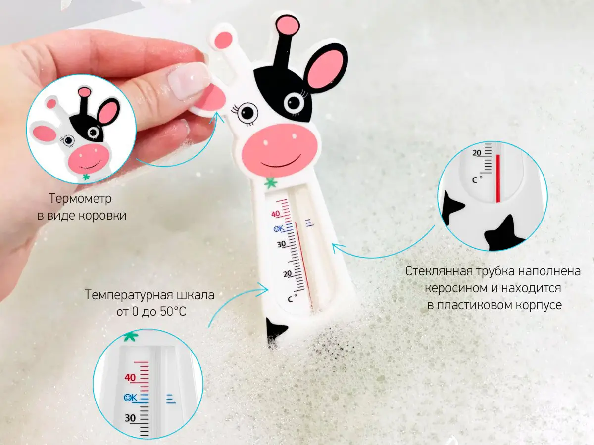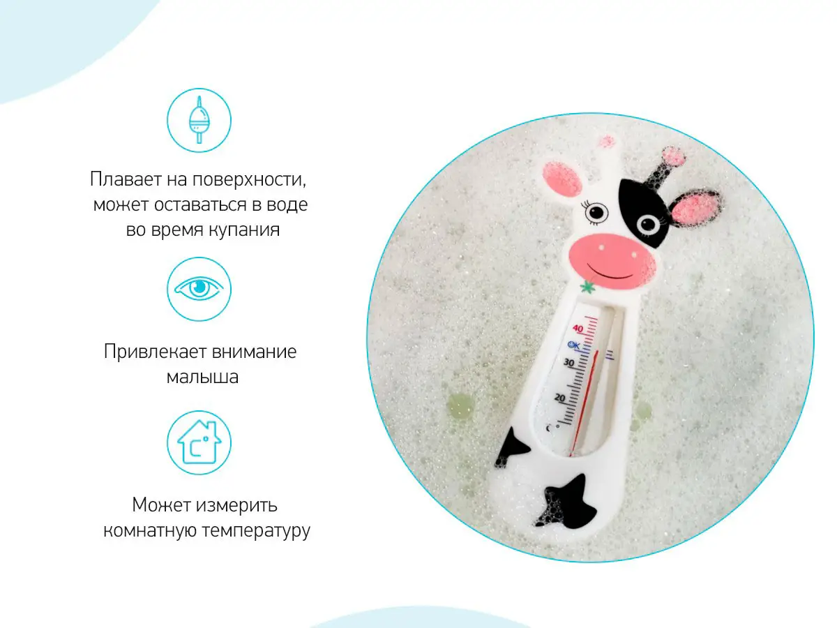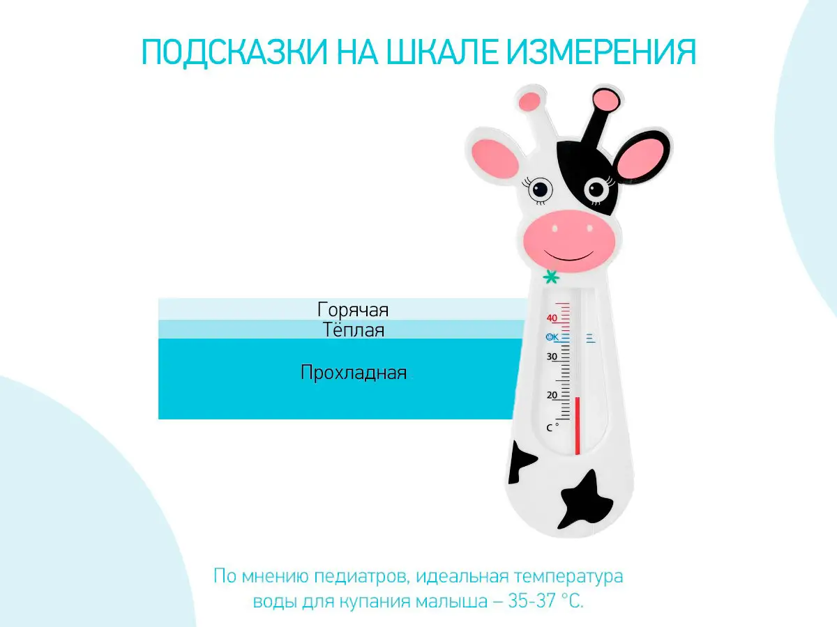Изделие плавает на поверхности и может оставаться в воде во время всего купания, так как не содержит ртути. Стеклянная шкала наполнена керо...