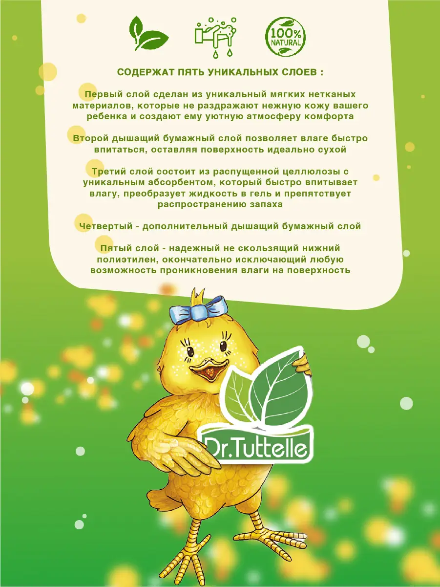 Детские гигиенические одноразовые пелёнки Dr.Tuttelle незаменимы с первого дня жизни. Пригодятся при переодевании и принятии воздушных ванн.