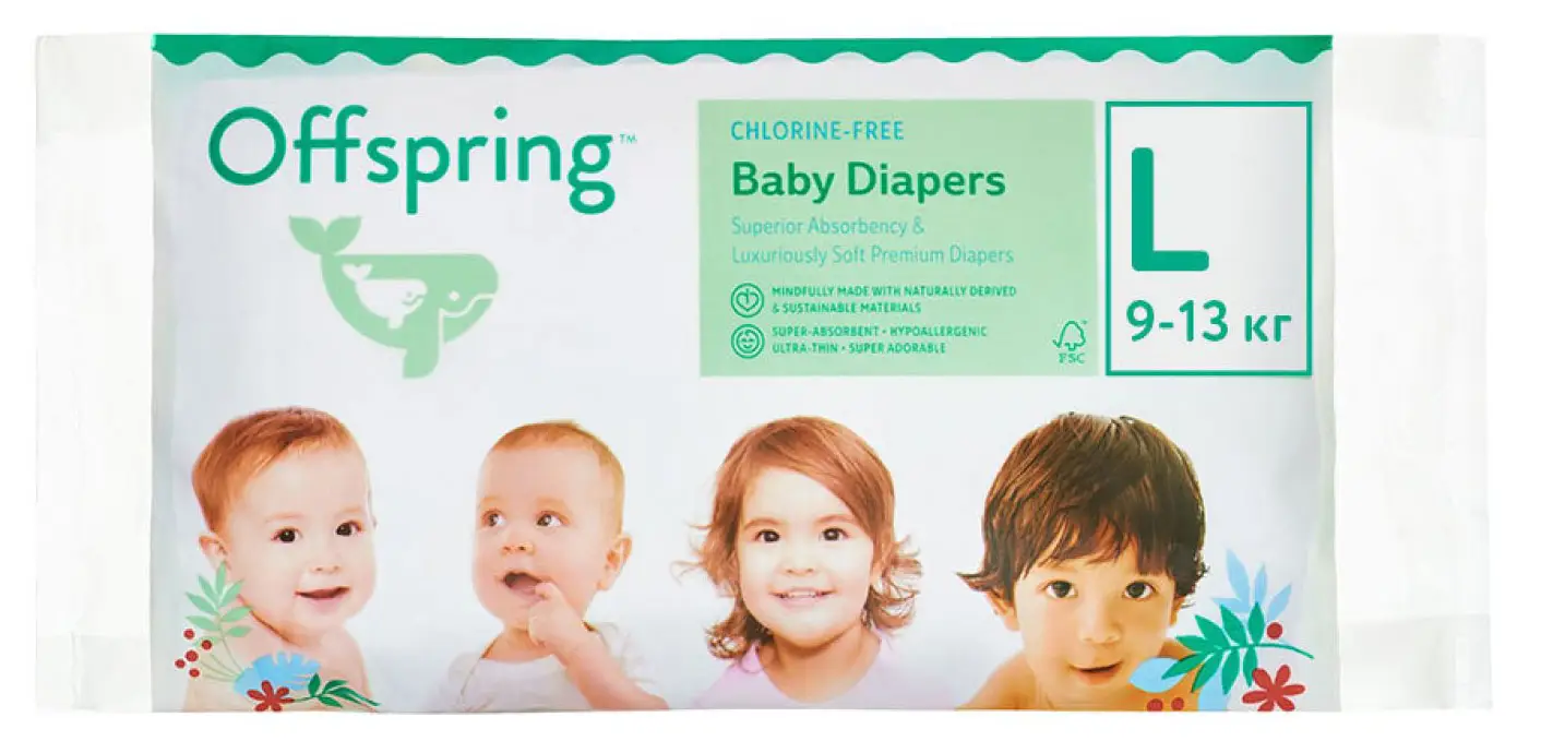 - подгузники Offspring безопасны, потому что не содержат хлора, парабенов, латекса, фталатов, тяжёлых металлов, отдушек и лосьонов;