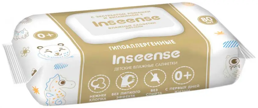 Салфетки детские влажные Inseense с экстрактом ромашки - незаменимое ежедневное средство гигиены для дома, на прогулке, в путешествии, в детском саду и школе.