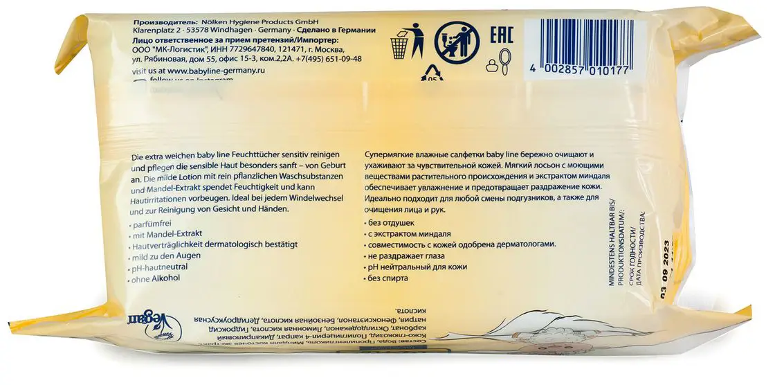Влажные салфетки Babyline для особо чувствительной кожи с экстрактом миндаля 80 штук
