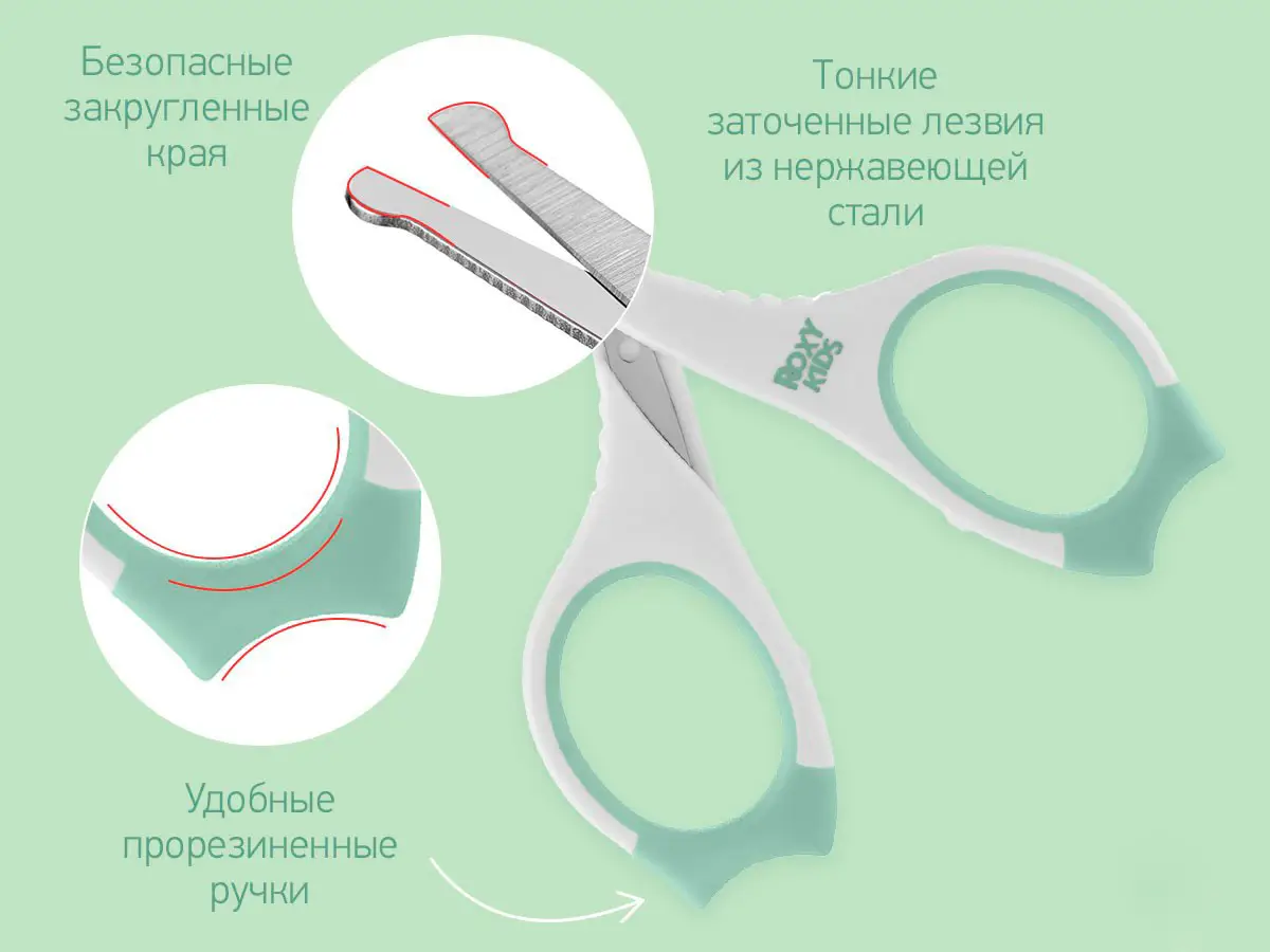 Маникюрные ножницы для новорожденных с прорезиненными ручками ROXY KIDS мятный