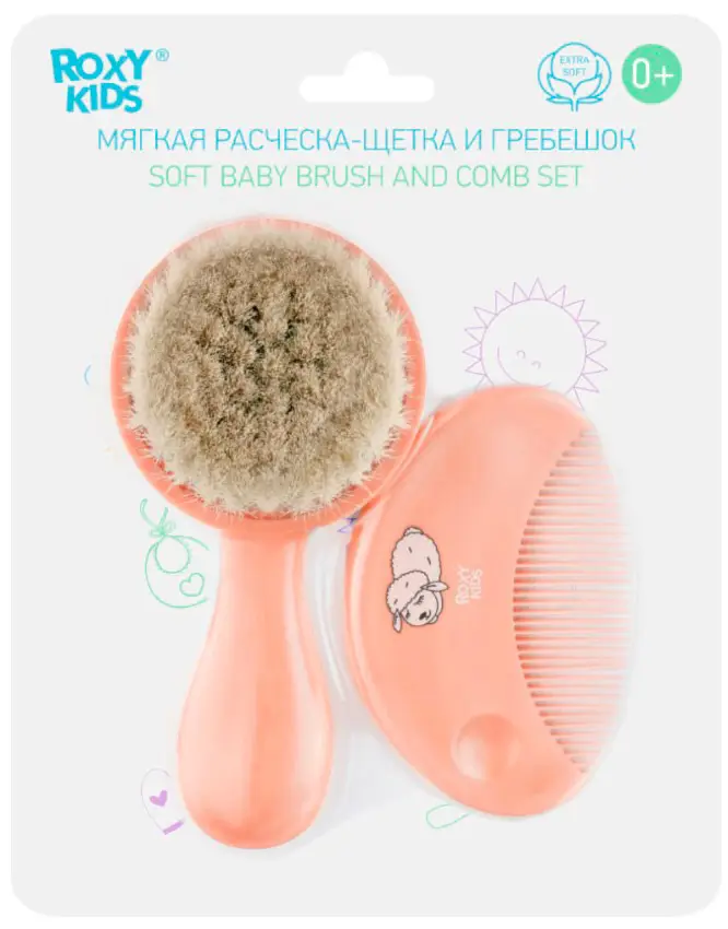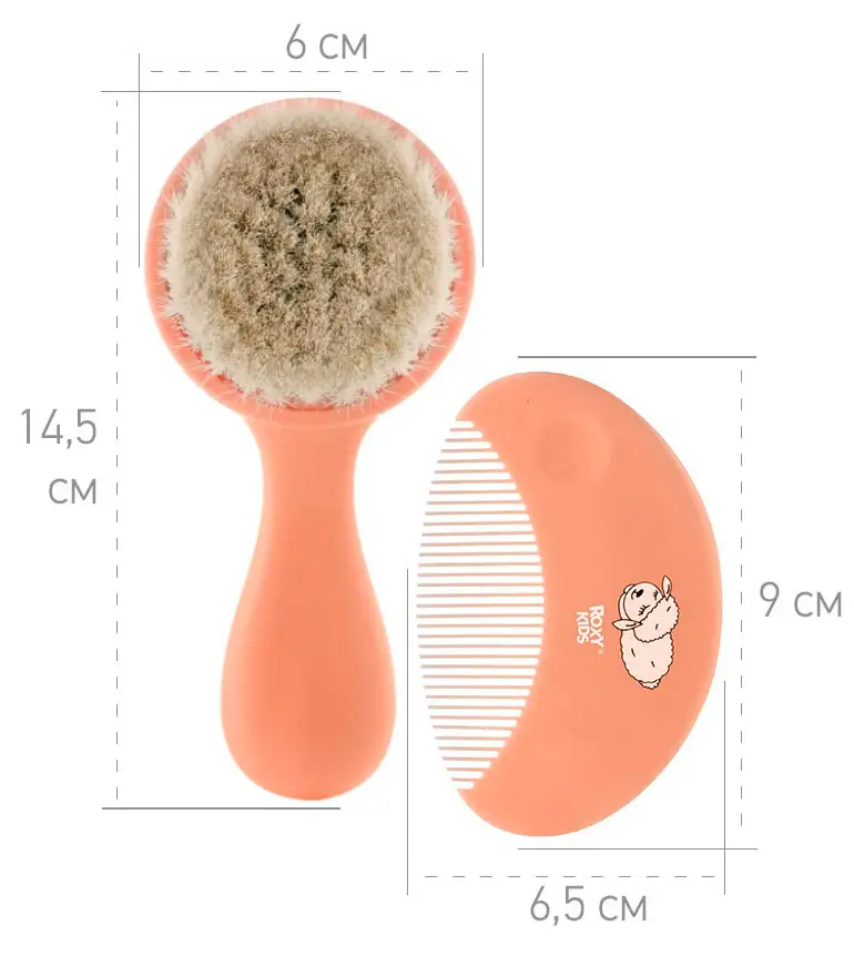 Расческа-щетка с мягким ворсом из натуральной овечьей шерсти и удобный гребешок Roxy Kids предназначены для малышей с первых дней жизни.