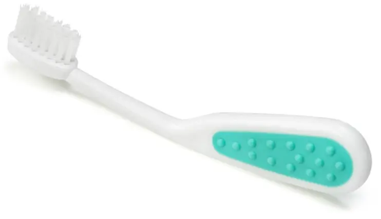 миниатюрная зубная щётка из деликатного нейлона поможет ухаживать за самыми первыми зубами и снять зуд при прорезывании.