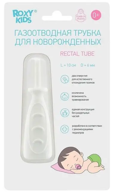 Газоотводная трубочка от Roxy Kids для новорождённых может применяться с первых дней жизни.