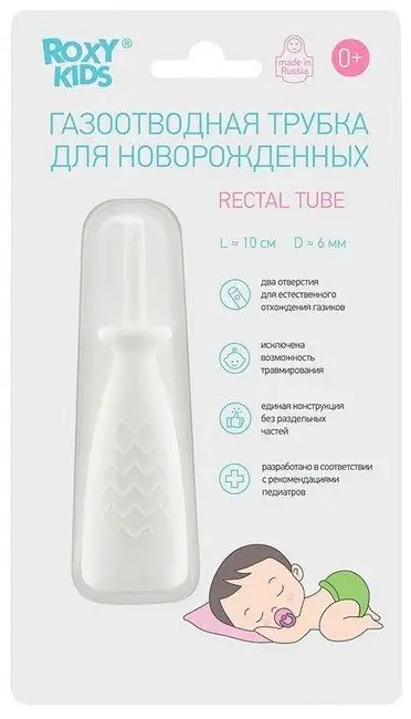 Газоотводная трубочка от Roxy Kids для новорождённых может применяться с первых дней жизни.