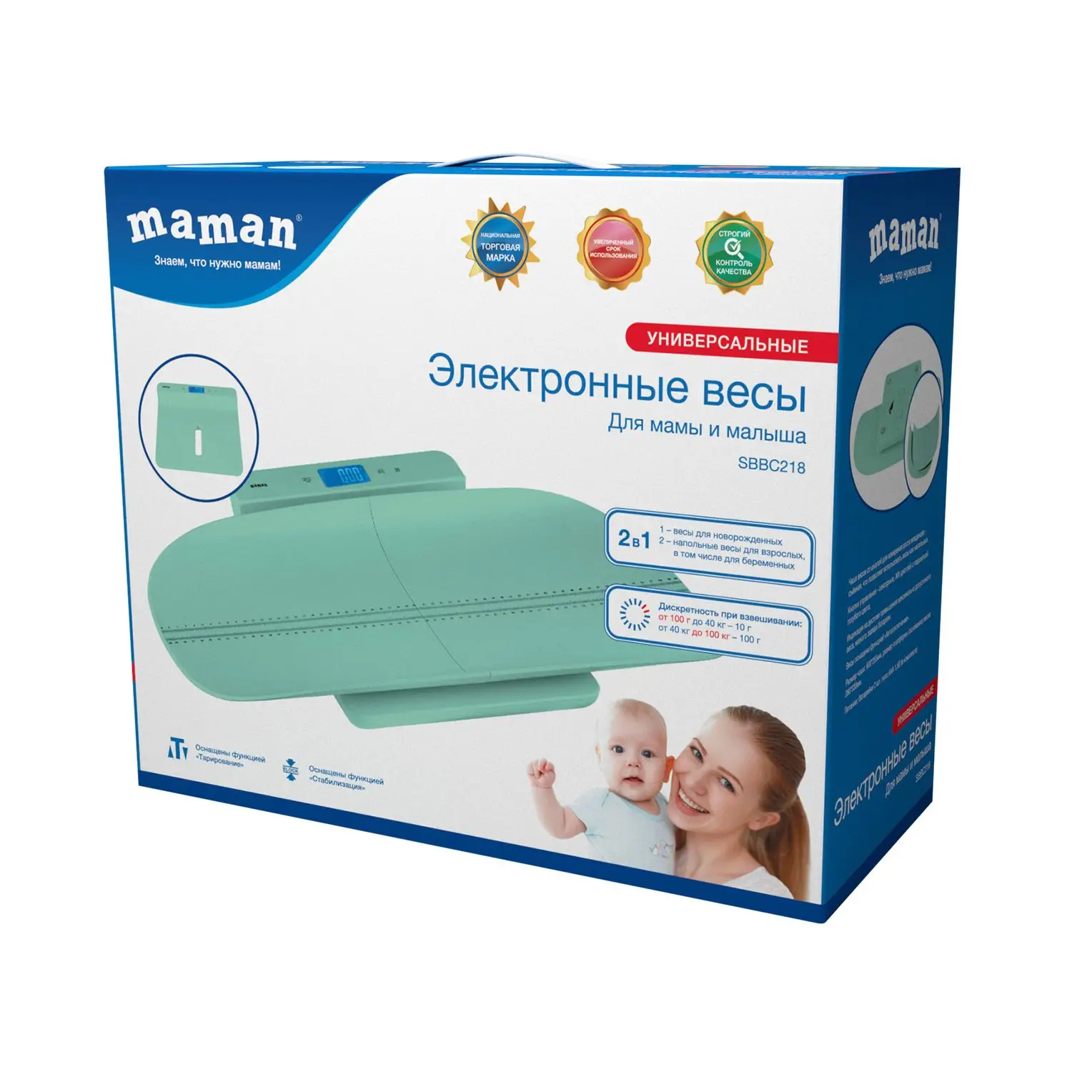 Универсальные электронные весы для мамы и малыша Maman предназначены для контроля изменения веса и роста ребёнка.