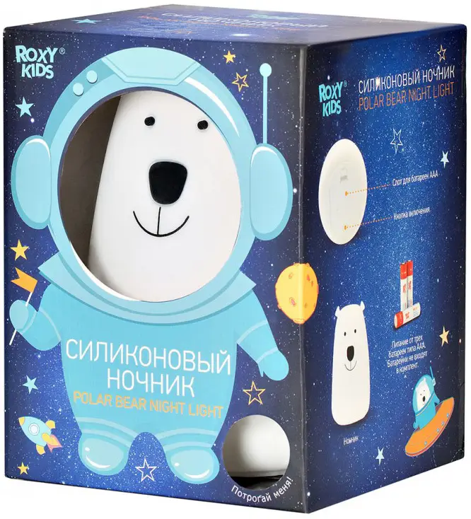 Фигурка белого медведя сделана в виде ночника, чтобы вашему малышу было не страшно засыпать и просыпаться в темноте.