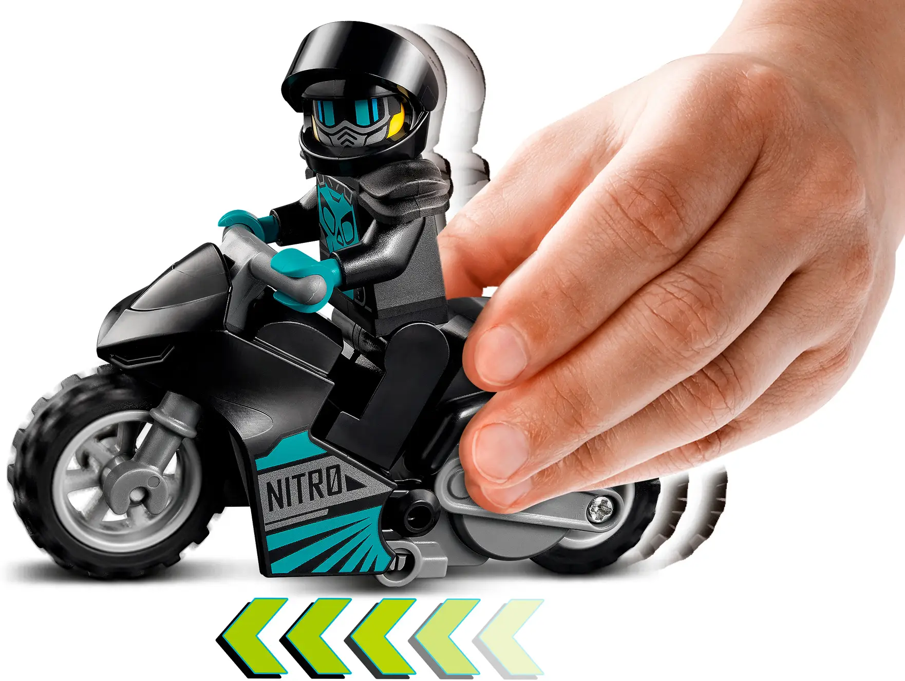 Присоединяйтесь к персонажам сериала «Лего Сити» клоуну Цитрусу, Нейту и Инкогнитро для захватывающих трюков! Разгоняйте мотоцикл с маховико...