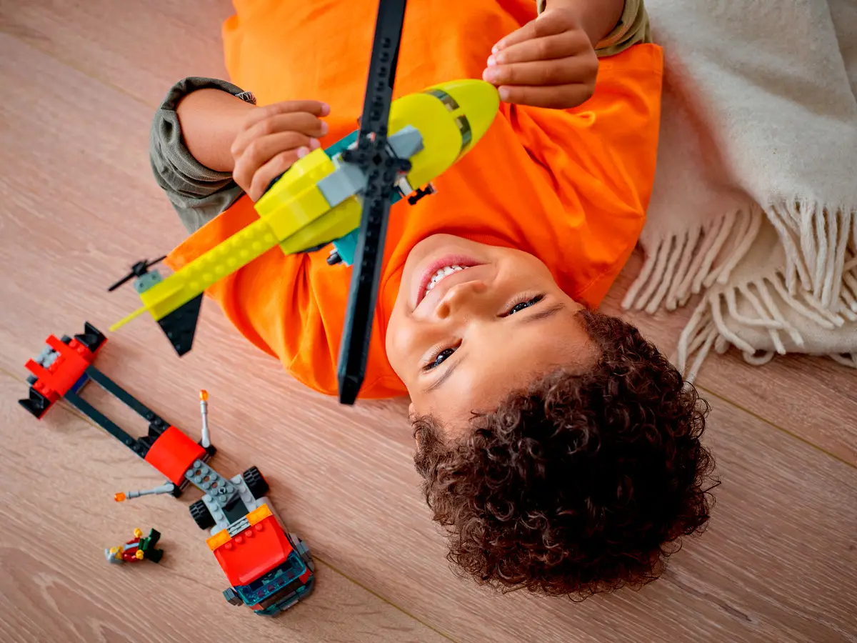 - у игрушечного грузовика длинная платформа-прицеп на шарнире и раскладные сигнальные огни, а у спасательного вертолета вращаются винты и есть место для хранения входящих в набор носилок;