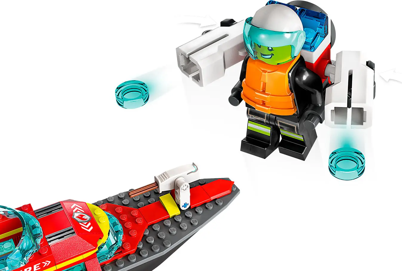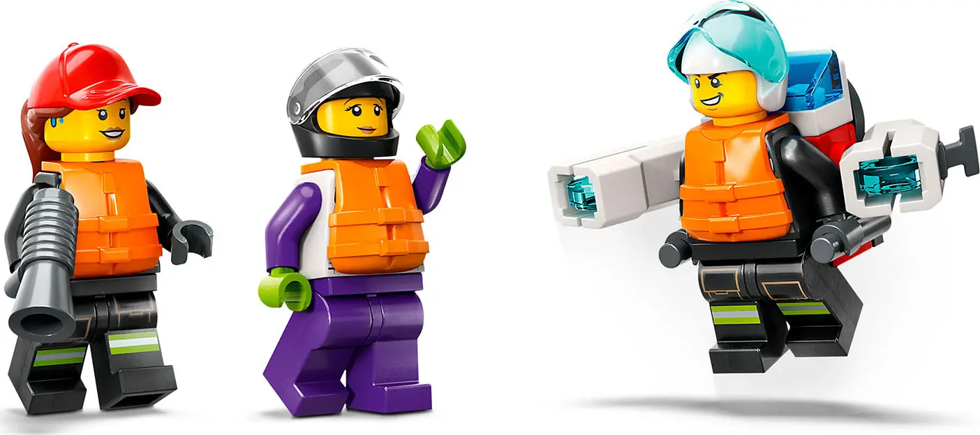 В набор Lego City Пожарная спасательная лодка входят классный игрушечный пожарный катер и быстроходная шлюпка. Дети могут запускать элементы воды Lego из огнетушителя лодки и реактивного ранца пожарного, чтобы потушить пламя Lego.