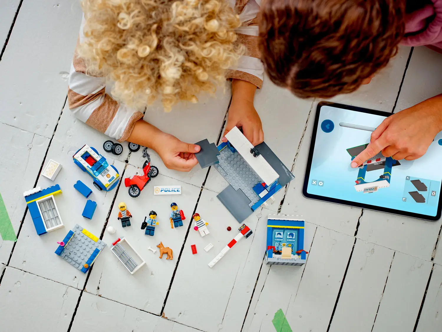 Набор Lego City «Побег из полицейского участка» включает в себя здание станции, которое оборудовано поднимающимся шлагбаумом, в нём есть оф...