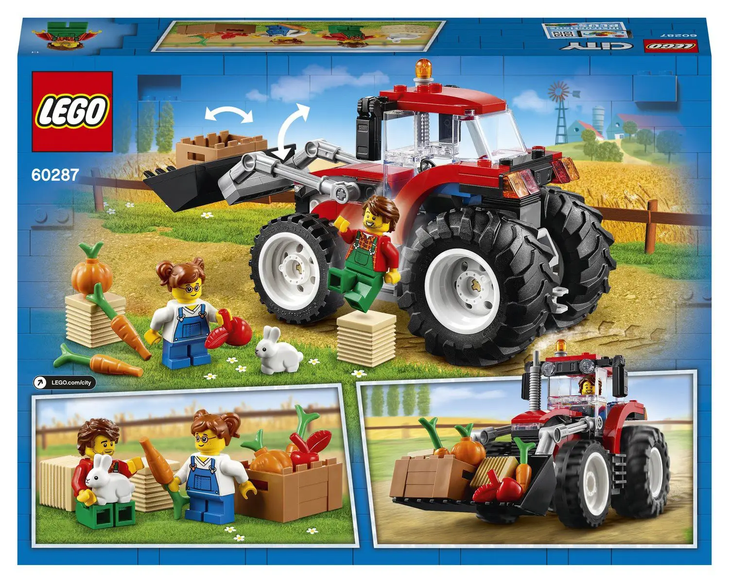 Отправляйтесь в деревню на легендарном тракторе LEGO City. Огромные задние колёса позволяют ему проехать по любому бездорожью.