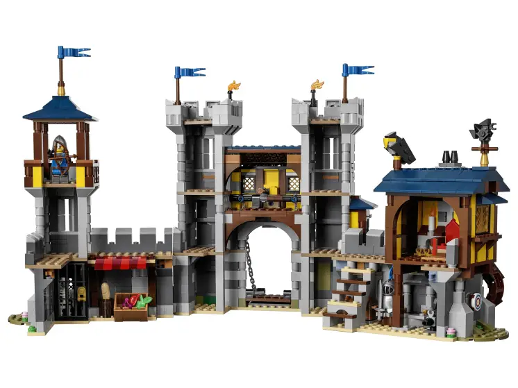 - у замка два этажа и есть петли, так что его можно раскрыть сзади для различных вариантов игры. Также вас ждут открывающиеся ворота, кузница, водяная мельница, королевские покои и тюрьма;