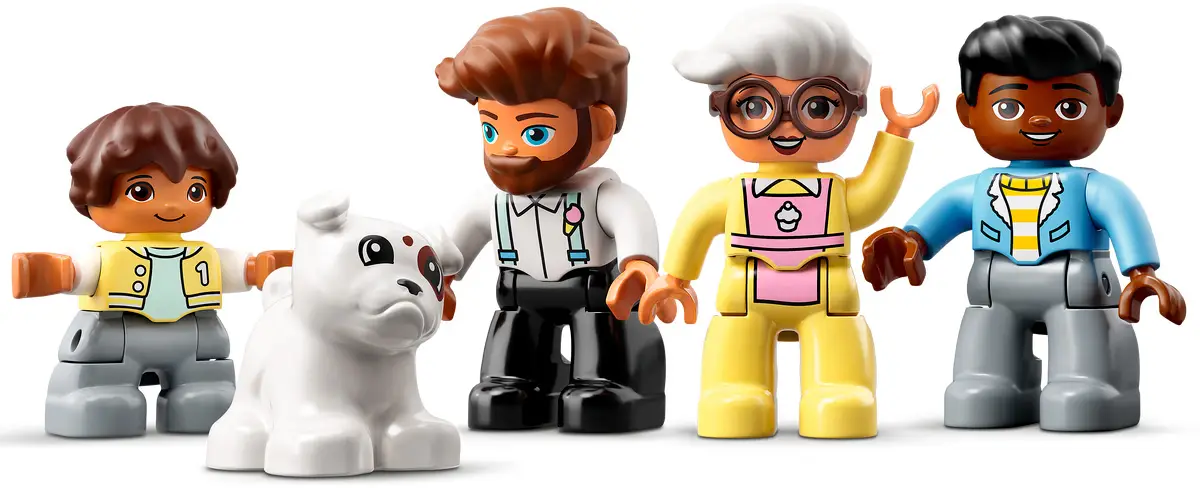 - включает 4 фигурки – 2 мужчин, бабушку и ребенка, плюс собаку и такие забавные функции, как автоматическая автомойка с тканевым «чистящим» занавесом, подвижный шлагбаум и билетный автомат;