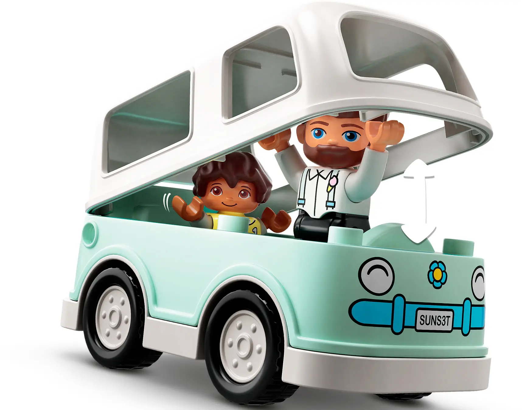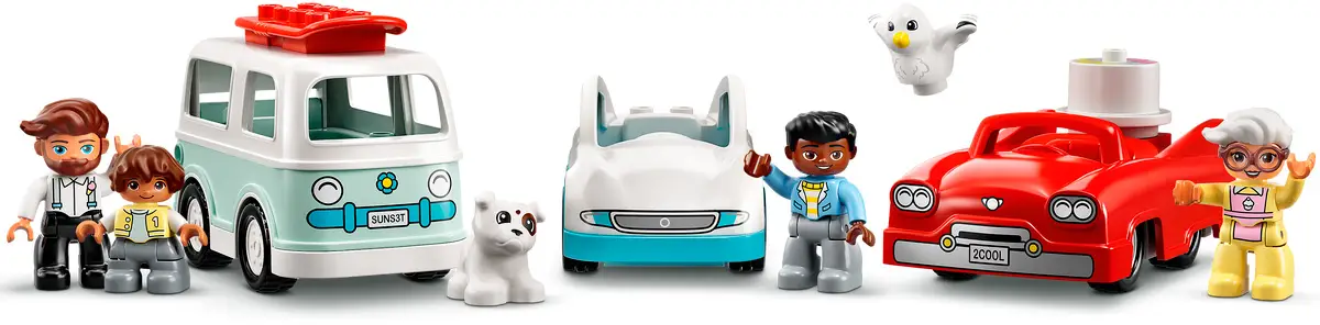 - в наборе три машинки: одна из них – механическая инерционная, а еще одна – туристический фургон с открывающимся верхом, в котором есть место для трех фигурок внутри и для снаряжения на крыше;