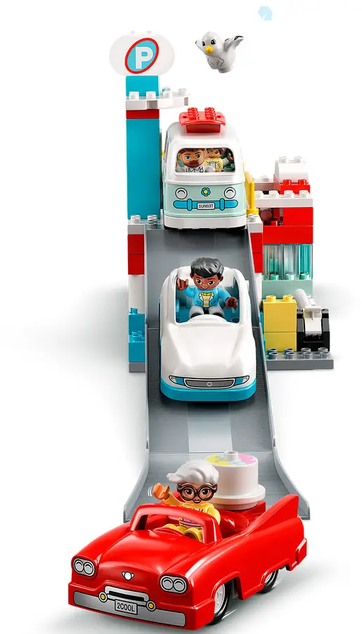 «Все в одном» – сооружение для паркинга и обслуживания автомобилей. Идеальный многофункциональный набор для малышей, любящих автомобили.