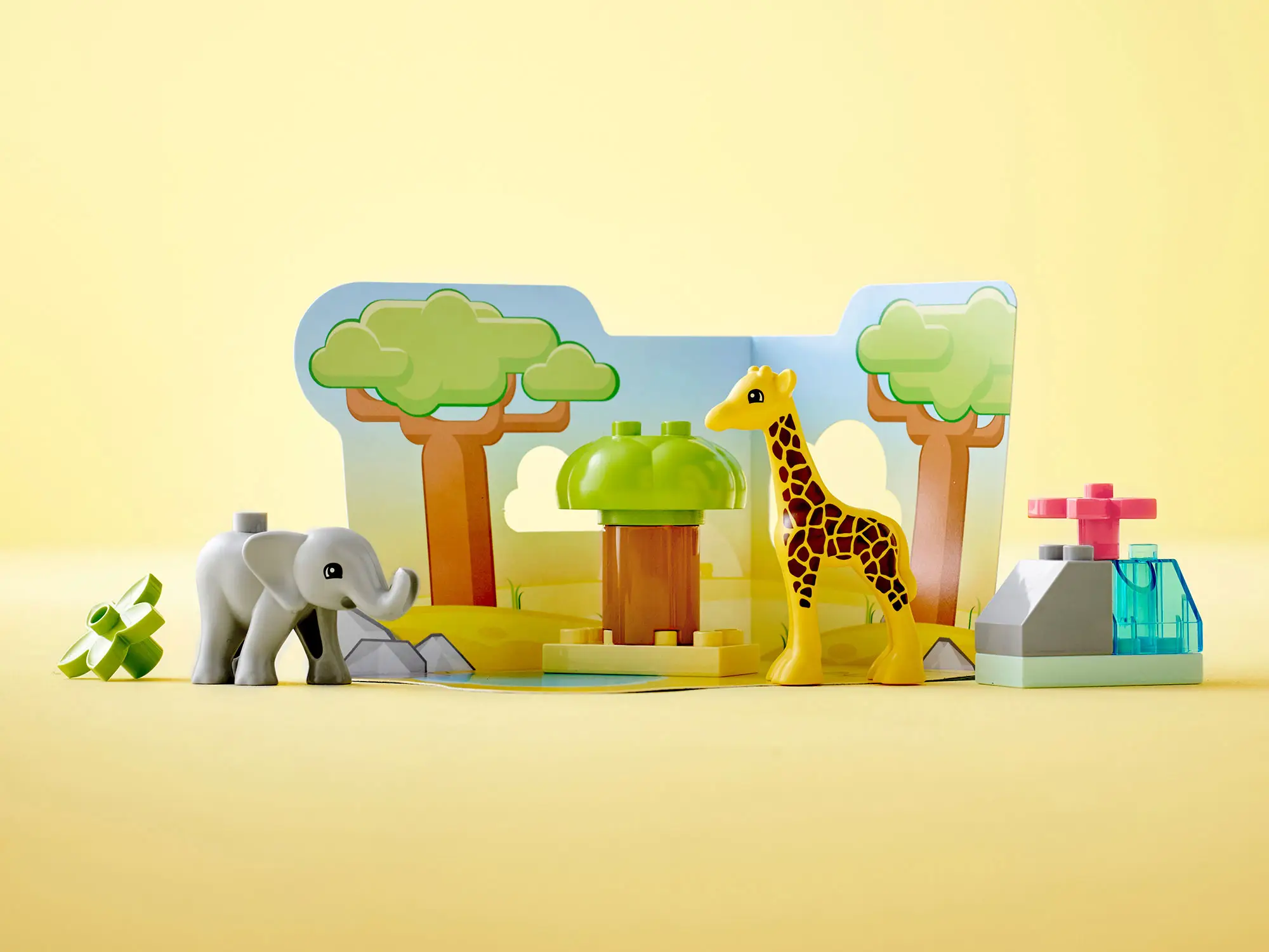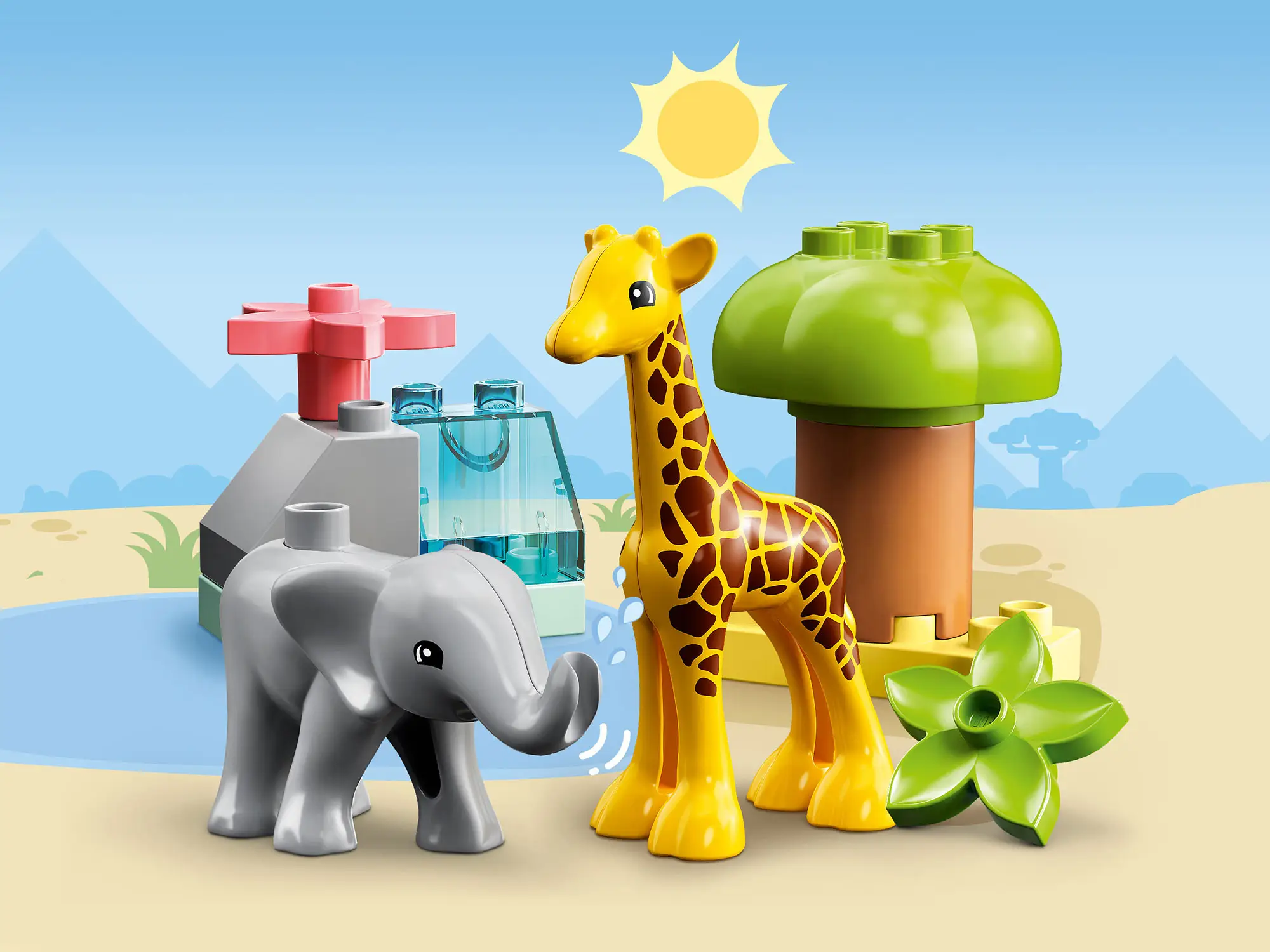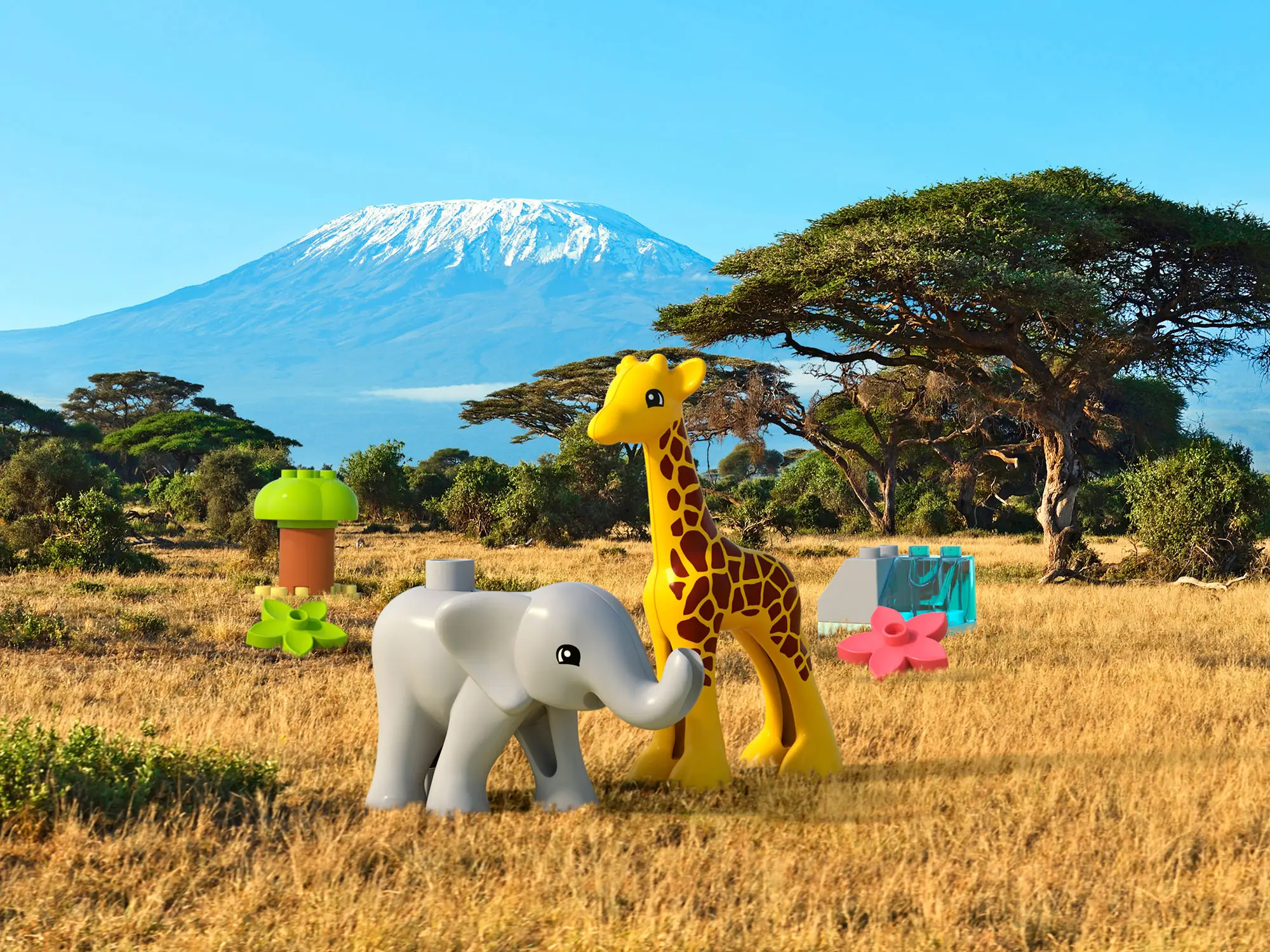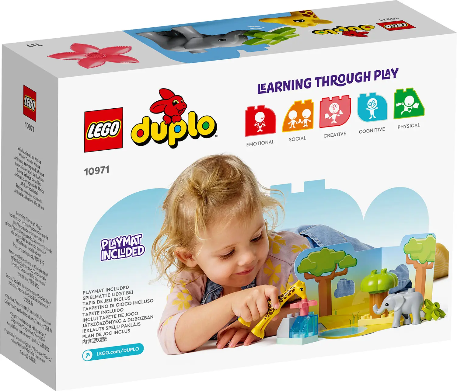 Познакомьте малышей с животными Африки с помощью набора Lego Duplo. В наборе есть цветы и дерево, которыми могут подкрепиться фигурки животных, а также трёхмерный игровой коврик с лесом для исследования.