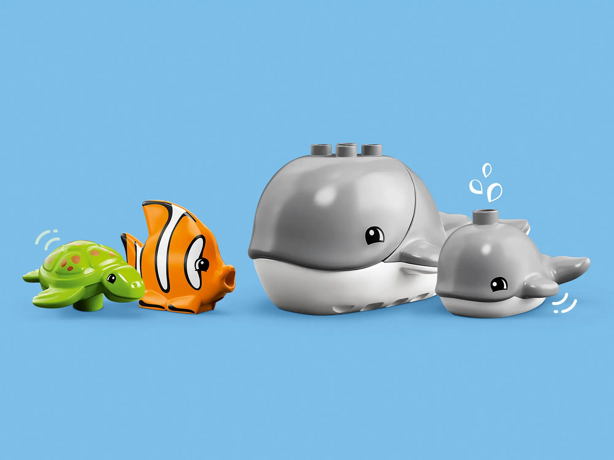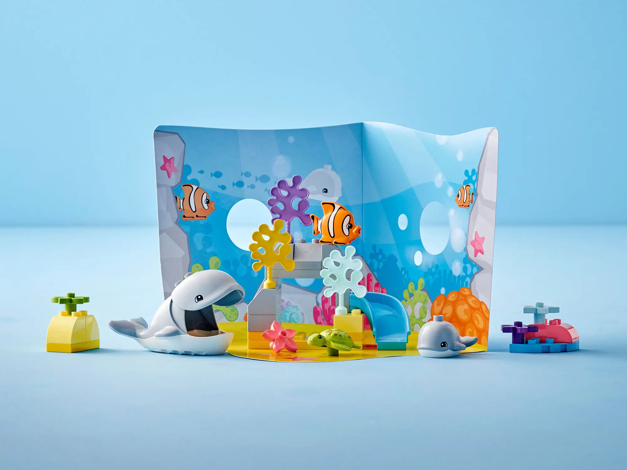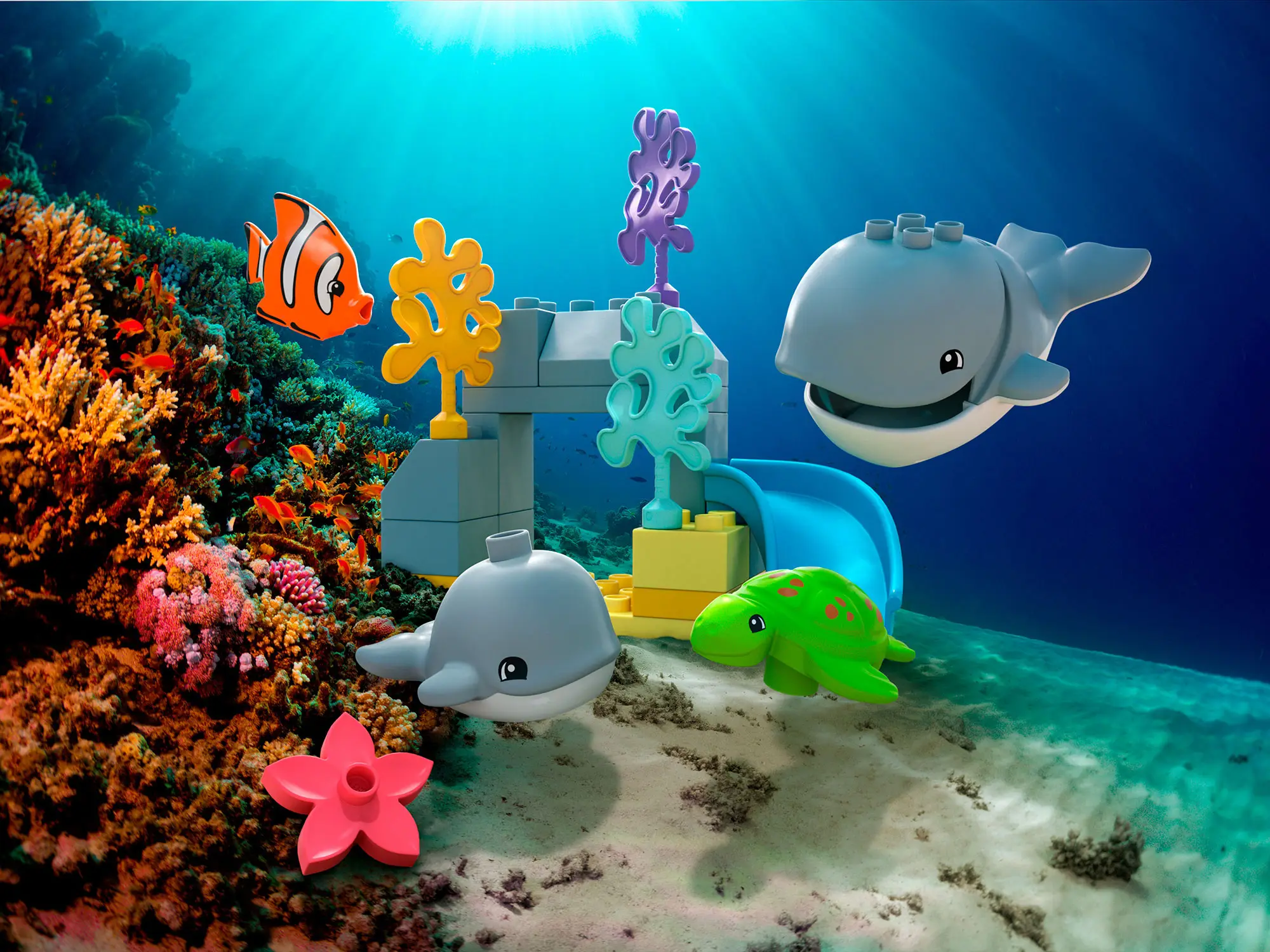 Набор Lego Duplo «Обитатели океана» – отличный способ развить у детей навыки самовыражения и мелкую моторику, пока они будут наслаждаться бесконечными ролевыми играми с самыми милыми обитателями океана. В наборе есть весёлая водная горка и трёхмерный складной игровой коврик с океанским дном для изучения – одним словом, все, чтобы вдохновить на творческую игру и развить важные жизненные навыки у вашего юного исследователя океана.