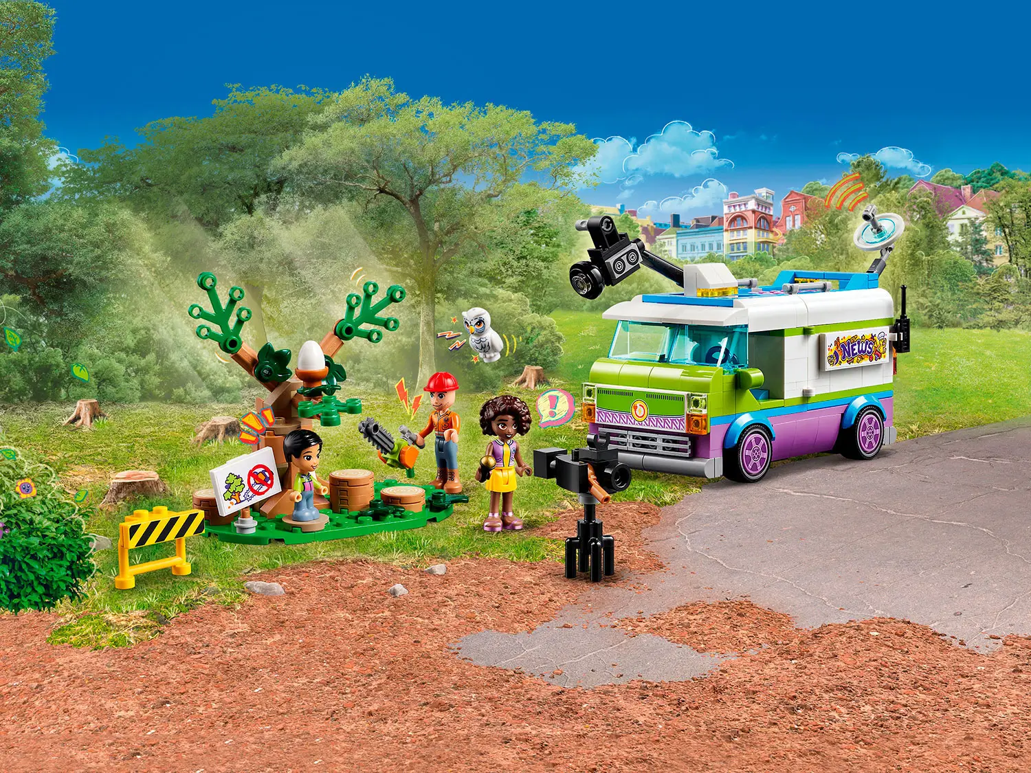 Трудолюбивая Алия стремится сообщать последние новости для общественного центра. Внутри фургона есть все, что нужно Алие для создания и публикации новостей, включая экраны, освещение, камеры, микрофоны, блокнот и ручку. Дети могут разыграть репортаж о лесорубе, который прибыл, чтобы срубить дерево. После съемок истории дети могут перенести Алию в диспетчерскую внутри фургона, чтобы редактировать и транслировать новости. В набор входят 2 мини-куклы, 1 микрокукла и множество аксессуаров.