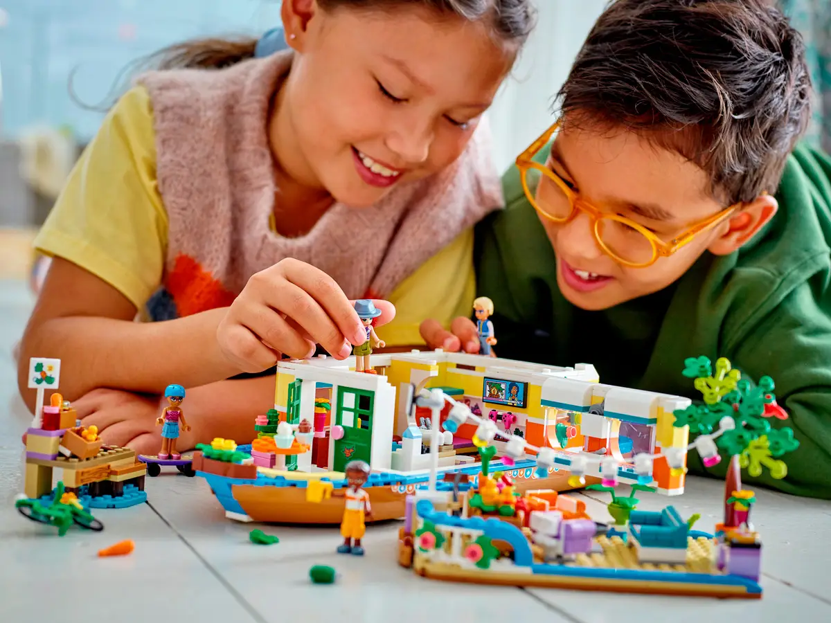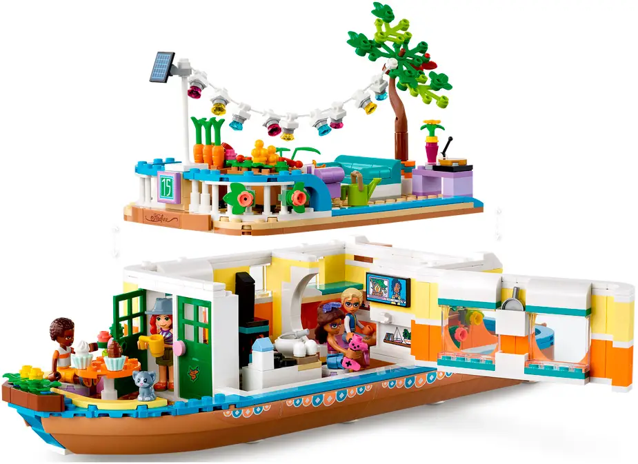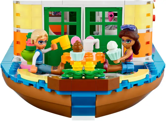 - с этим набором Lego Friends дети смогут починить лодку, поливать растения из лейки, играть на игровой приставке или проводить время с друзьями, играя с котенком на палубе;