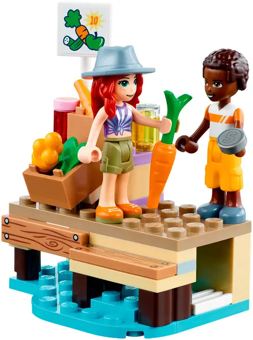 - в наборе с игрушечной лодкой есть 4 мини-куколки, включая подружку Lego Friends Мию, игрушечное животное, велосипед и отдельный рыночный прилавок, чтобы вдохновить на многие часы игры;