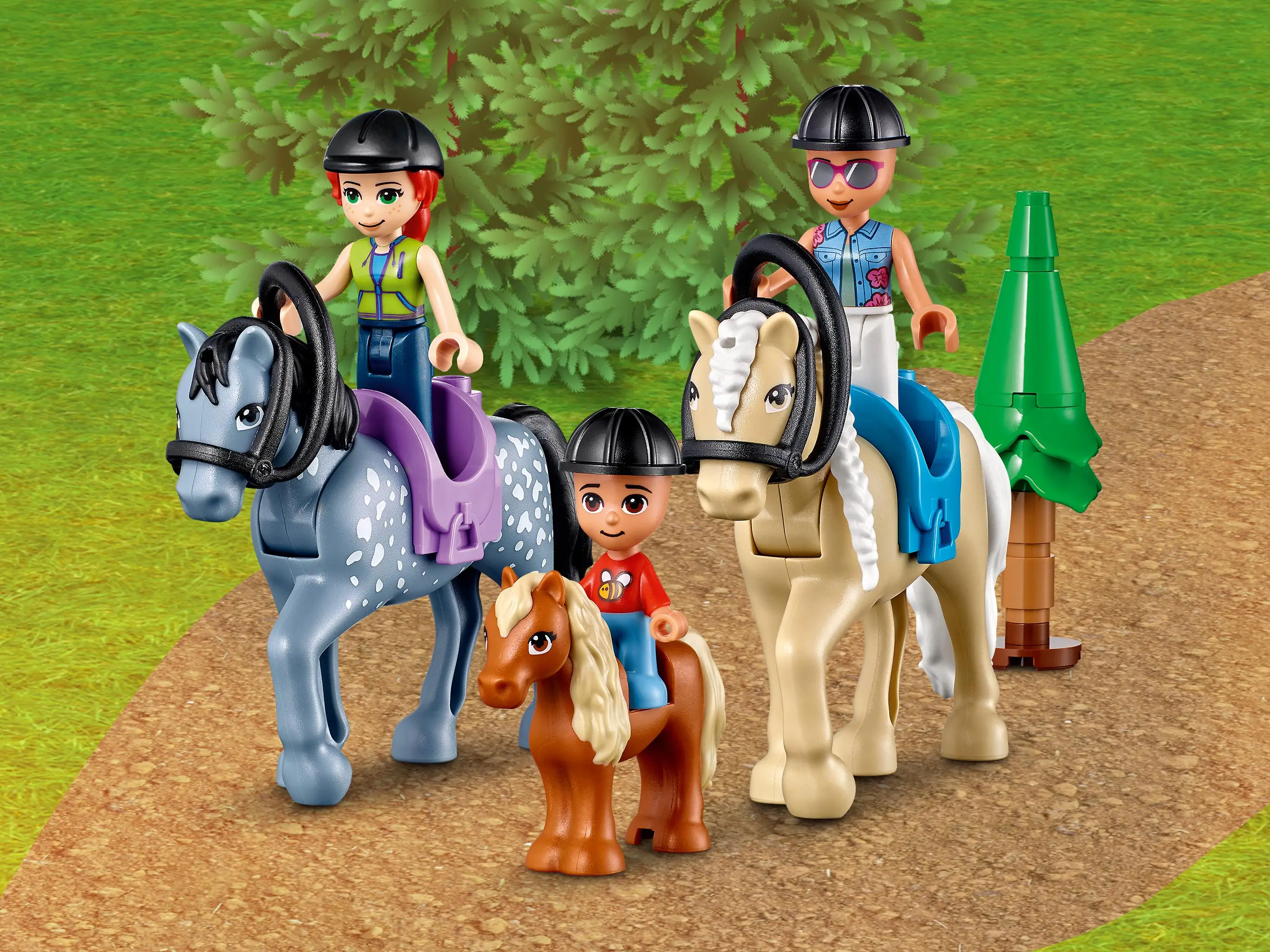 Присоединяйтесь к Мии, Саванне, ее собаке-поводырю Голди и брату Кевину, исследуя лес верхом на лошади. Вернувшись на конное ранчо LEGO Friends, они смогут позаботиться об игрушечных лошадях или отдохнуть в лесном доме в лесу, где есть кухня, спальня и столовая. Интересные истории продолжаются на улице, где друзья собираются вместе у костра, чтобы пожарить зефир. В набор входит множество аксессуаров для творческой игры, а второй этаж снимается для легкого доступа.