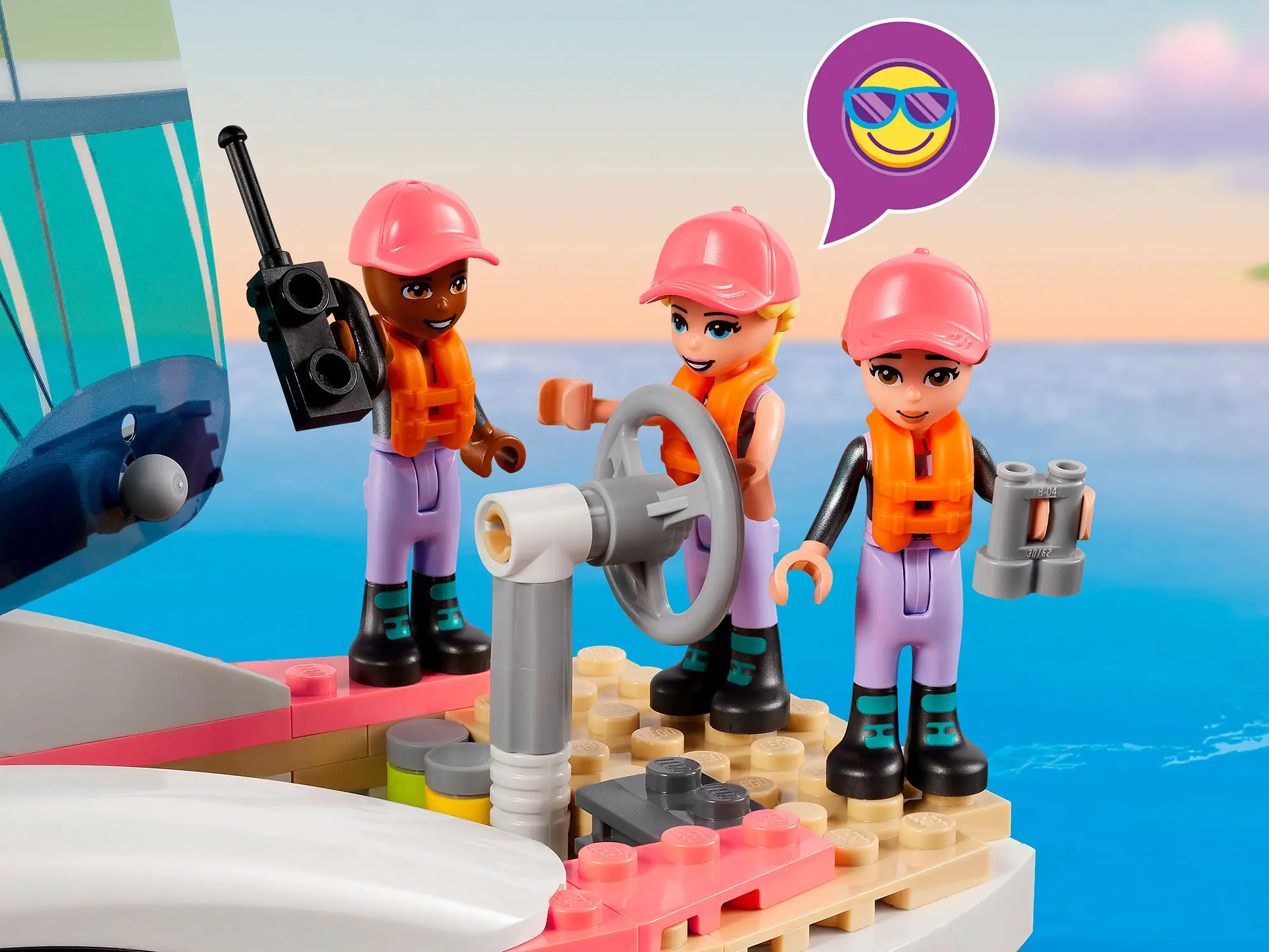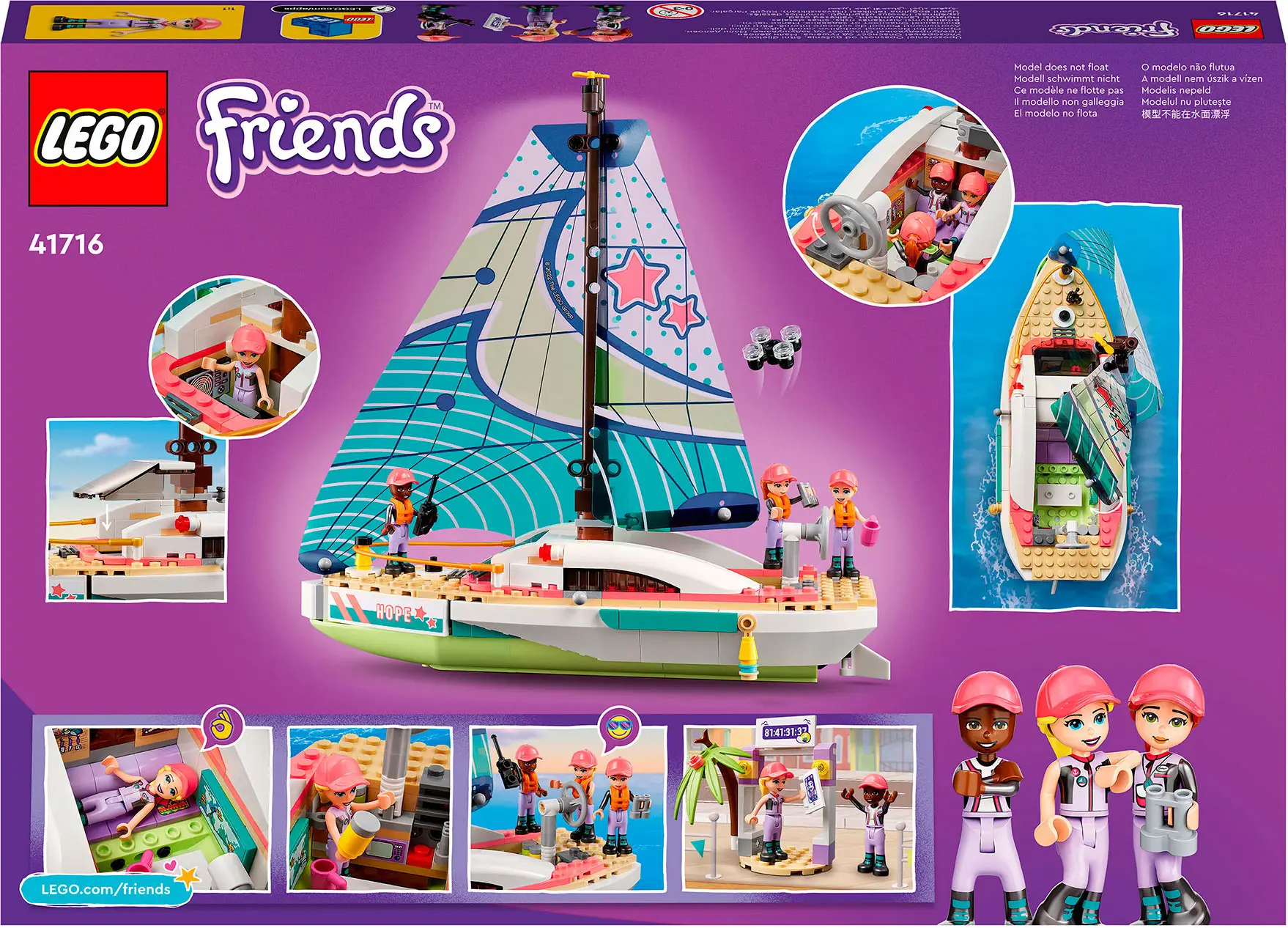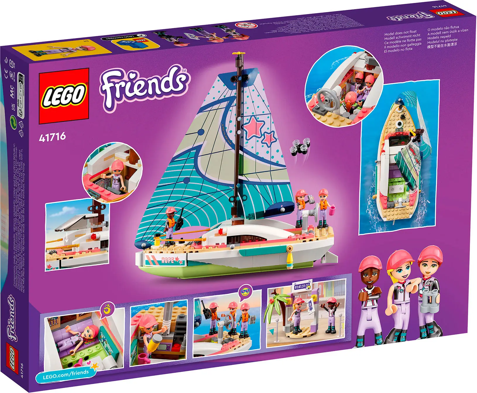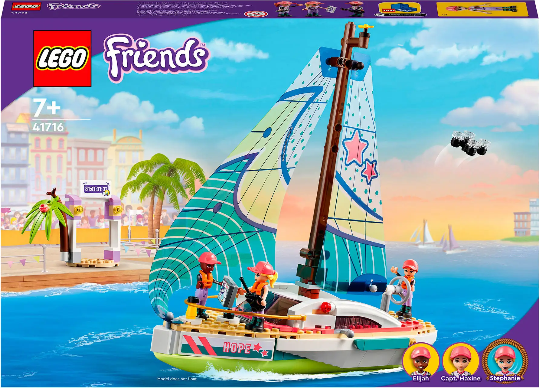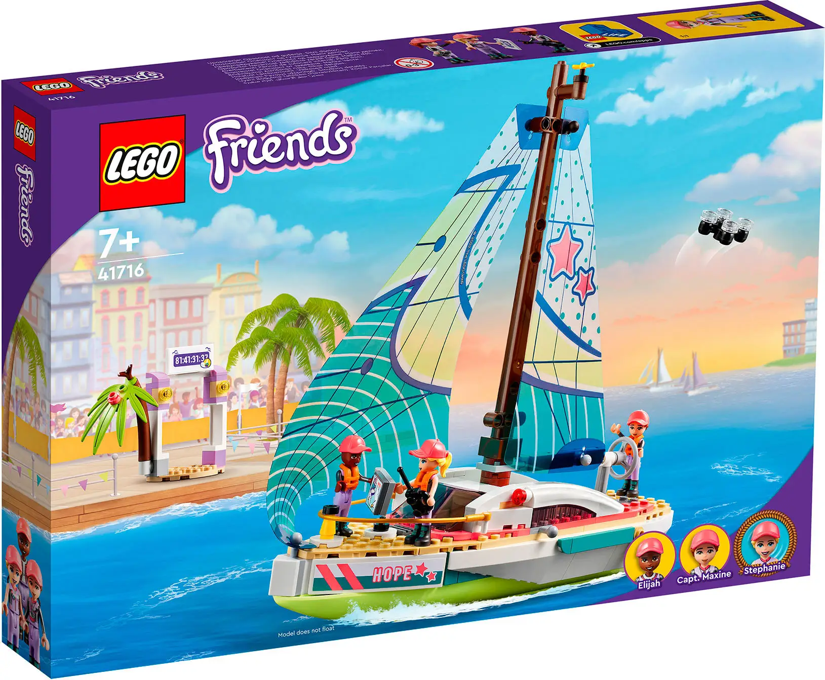 С помощью набора Lego Friends присоединяйтесь к Стефани, которая собирается совершить кругосветное путешествие на гоночной яхте. Вы поможете ей управлять спортивной парусной яхтой «Надежда» под присмотром капитана Максин. Яхта оснащена технологичным оборудованием для обеспечения безопасности в море. Взгляните на радар, чтобы убедиться, что путь свободен. Управляйте дроном, чтобы заснять захватывающее приключение.