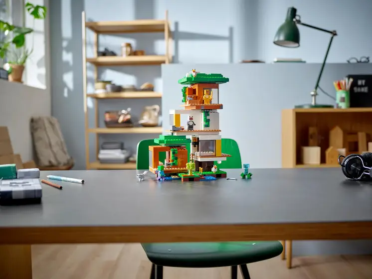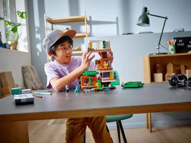 Игроков ждут новые приключения каждый раз, когда они перестраивают этот универсальный домик на дереве LEGO Minecraft.