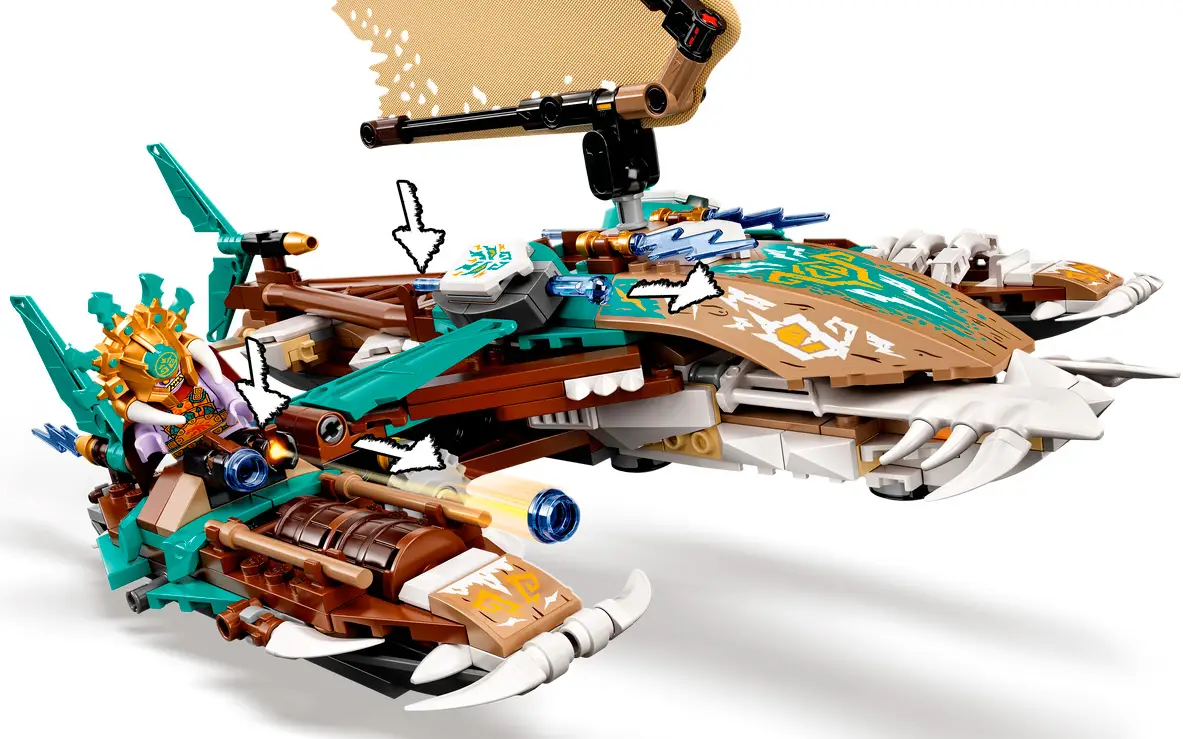 У детей есть все необходимое, чтобы воспроизвести захватывающие морские сражения из сериала Ninjago с этим фантастическим игровым набором.