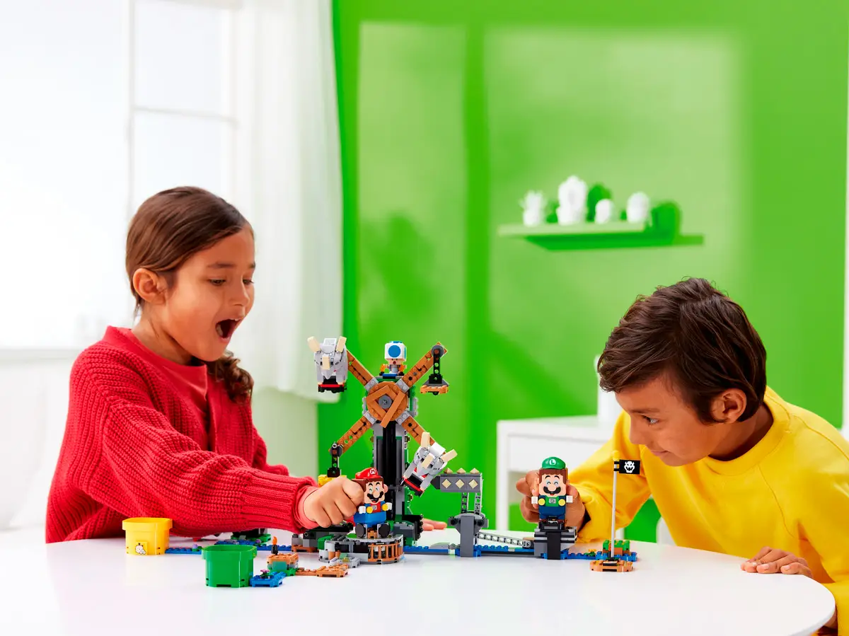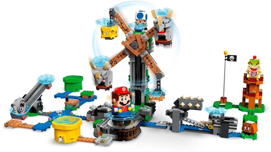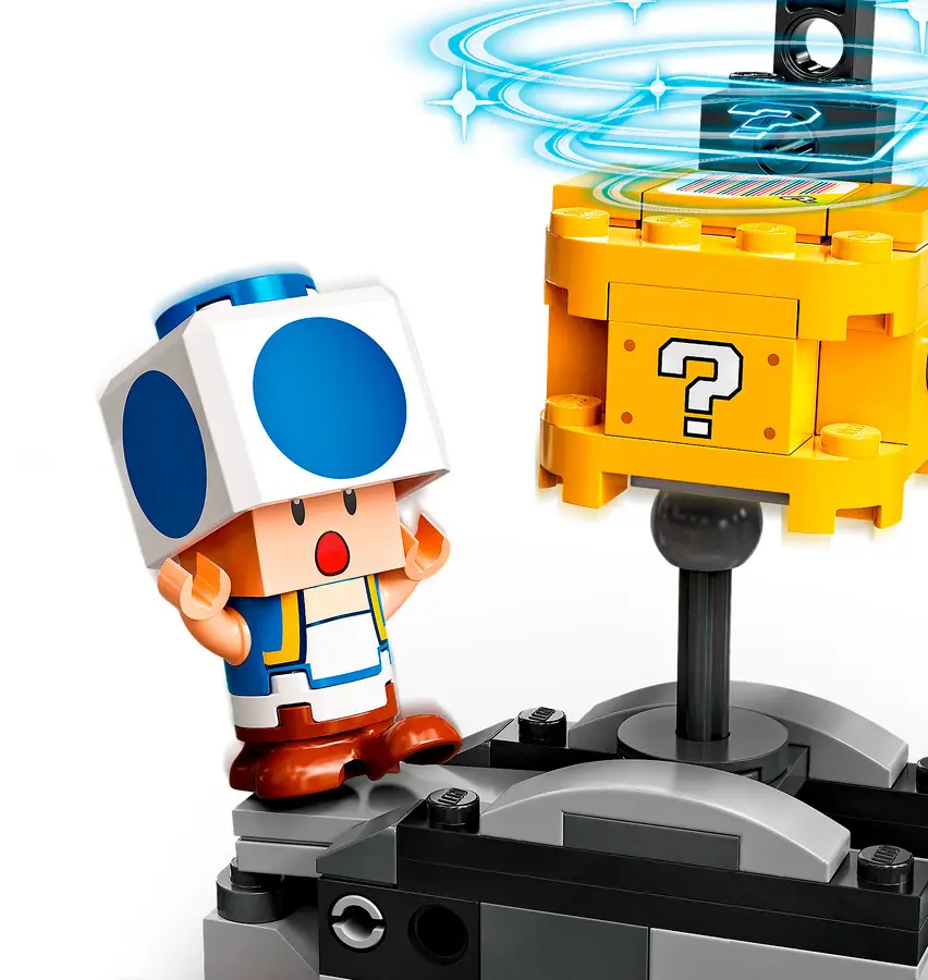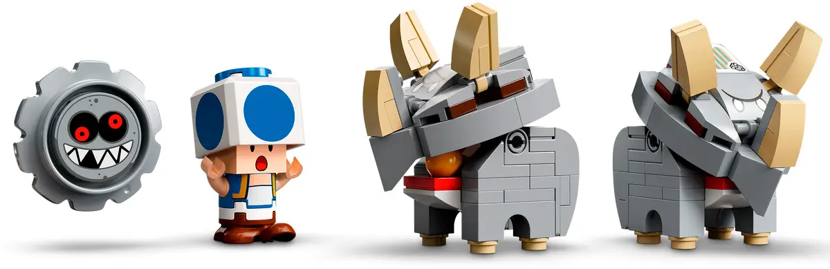 - содержит фигурки Lego знаменитых персонажей Super Mario — двух резноров, качающегося шипоката и синего Тоада. Также в наборе есть блок «?» и особая скоростная труба, предлагающая игрокам дополнительные награды;